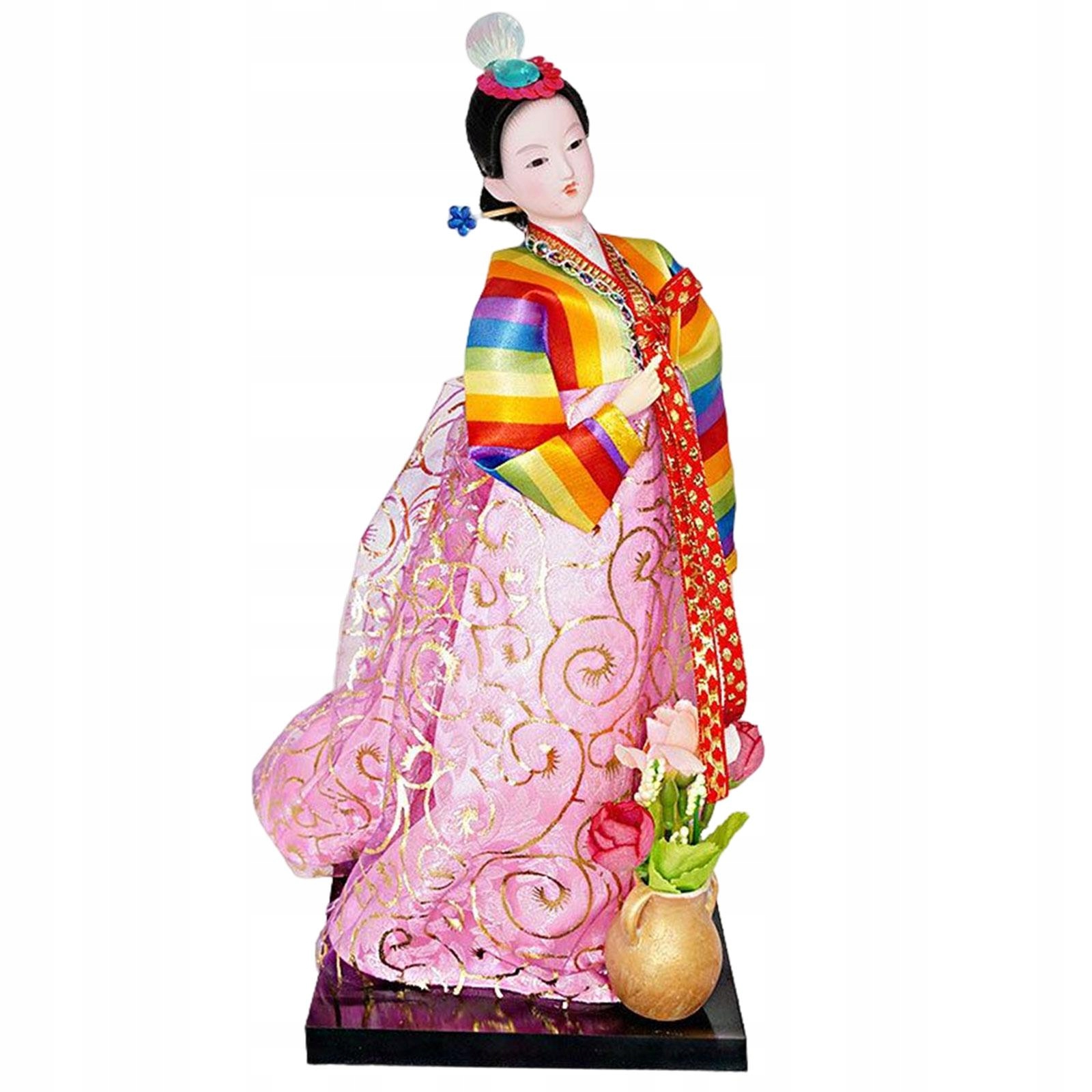Статуэтка корейской гейши, 12 дюймов, отдельно стоящие куклы ханбок, миниатюрные женские фигурки, красочные и розовые