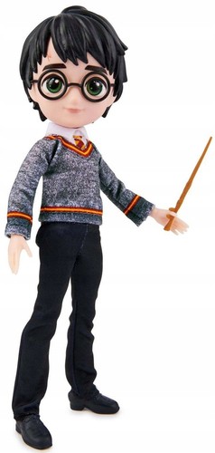 У Гарри Поттера черные пластиковые волосы и зеленые глаза. Он одет в форму Хогвартса в цветах Гриффиндора. В руке он держит палочку, а на носу у него фирменные круглые очки. Размер куклы 20 см.