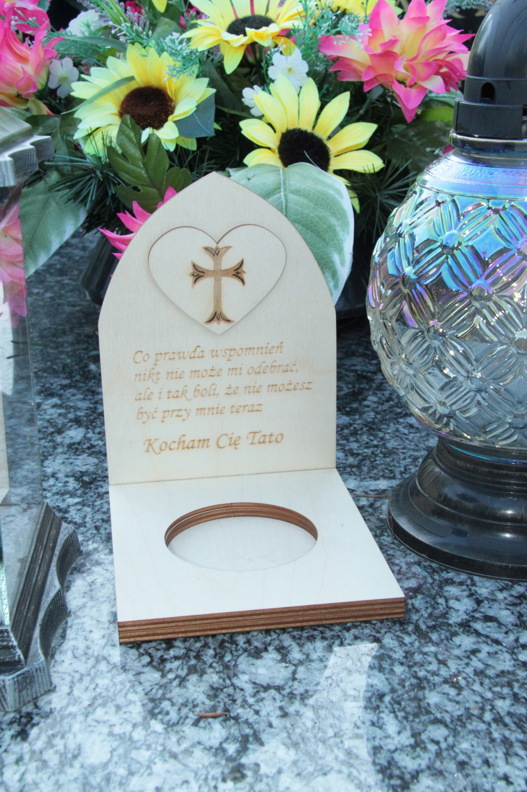 <ул>Деревянный подсвечник с посвящением папе. Вырезанный лазером из деревянной фанеры, уникальное декоративное украшение ко Дню всех святых. Выполненное лазером посвящение и трехмерный декоративный элемент вместе создают приглушенное и элегантное украшение, которое также защищает надгробие от грязи и брызг.