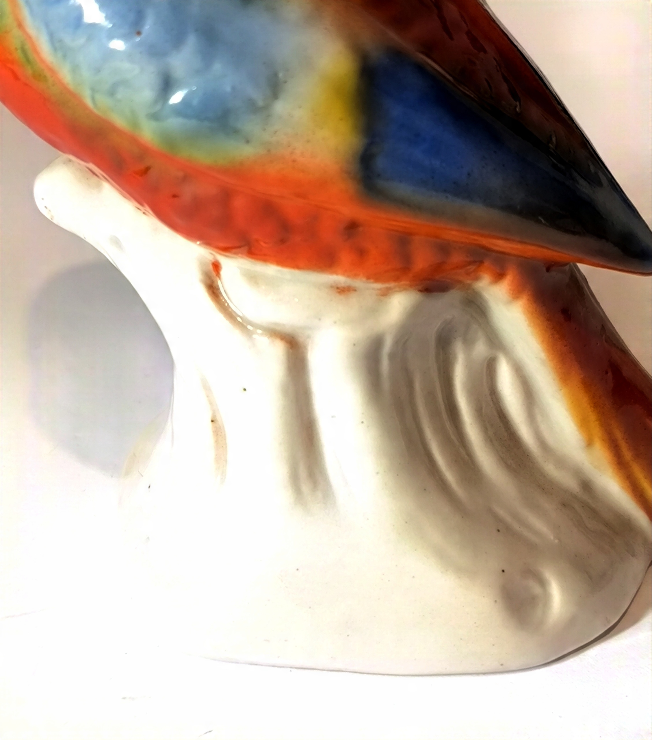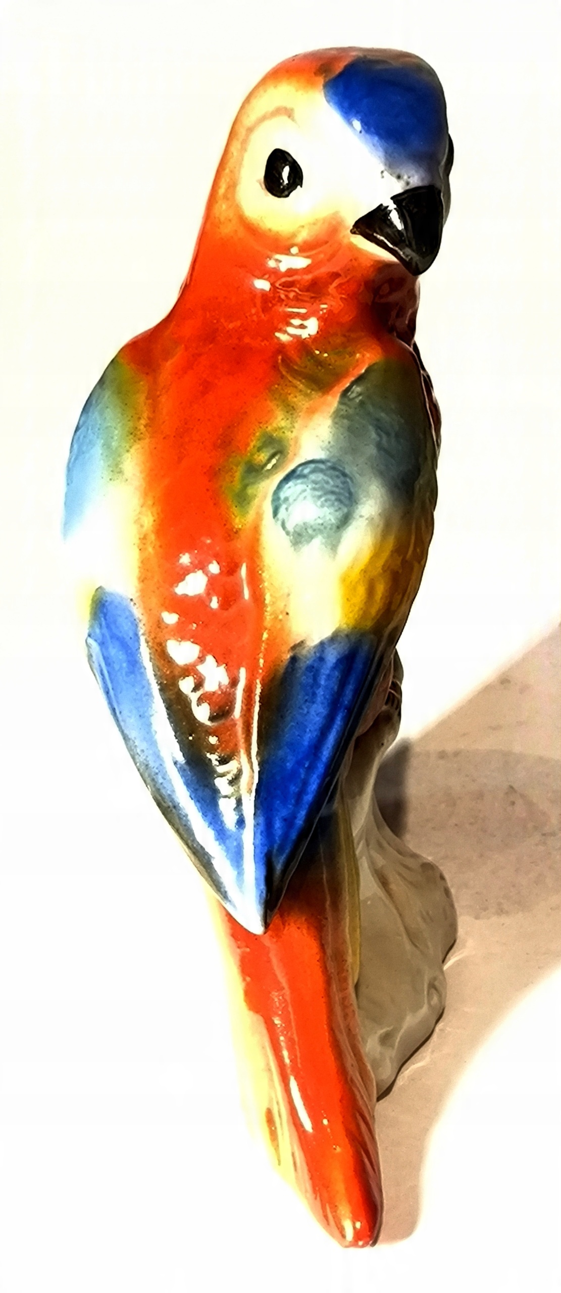 Статуэтка с изображением попугая из белого фарфора, расписанная вручную. У него есть подпись.
