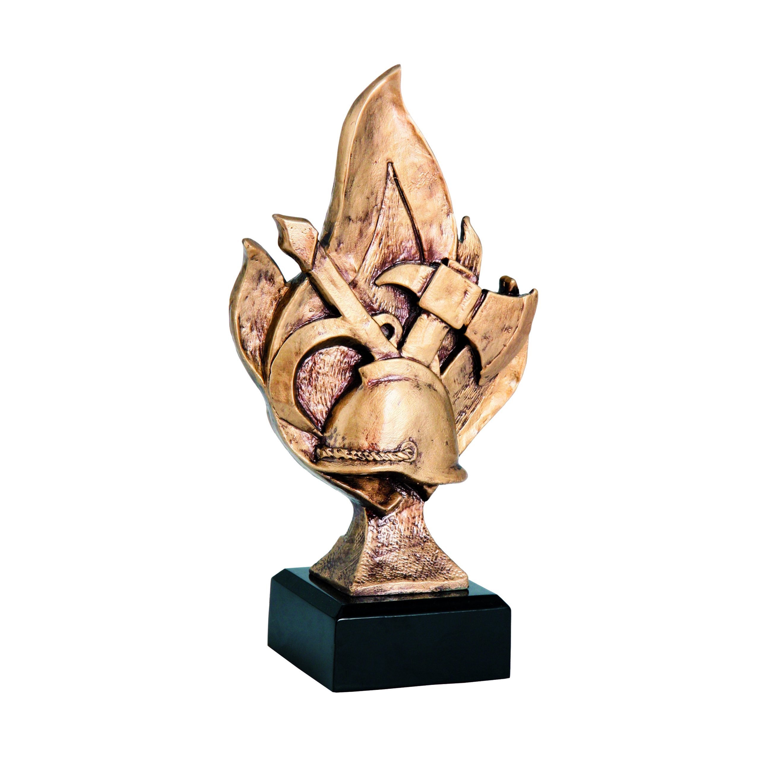 Уникальная литая статуэтка, изображающая принадлежности пожарных на фоне пламени. Элементы экипировки пожарного - каска и топор, а также другие литые элементы придают всей вещи неповторимый характер, а благодаря элегантной расцветке она будет отлично смотреться на полке с трофеями. Это отличная идея для индивидуального признания, в том числе, пожарного. на их празднике, 4 мая.