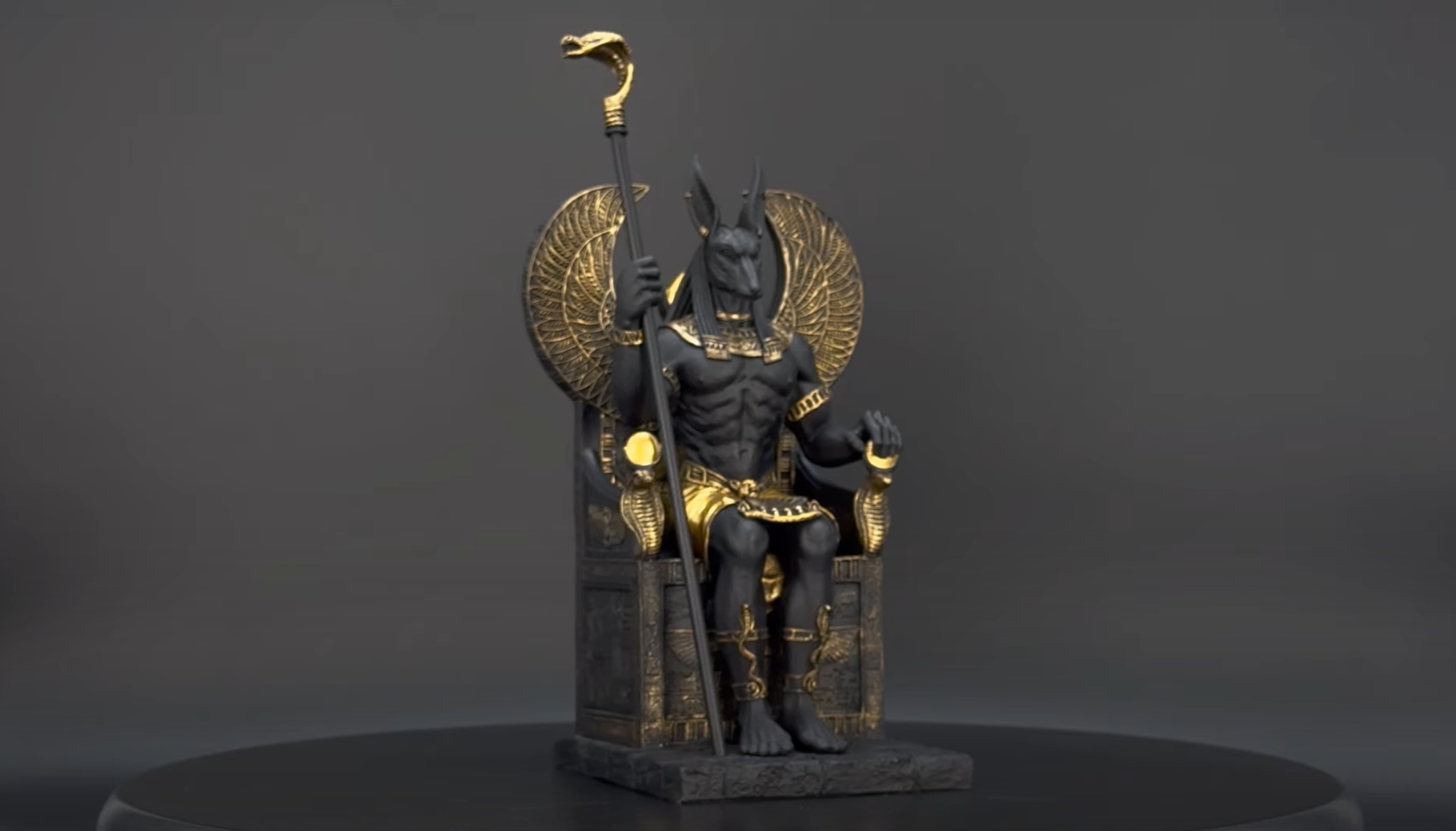 ⚡Египетский бог Анубис на черном троне — скульптура, которая своими прекрасными деталями порадует каждого человека. Это чрезвычайно реалистичная фигура.
