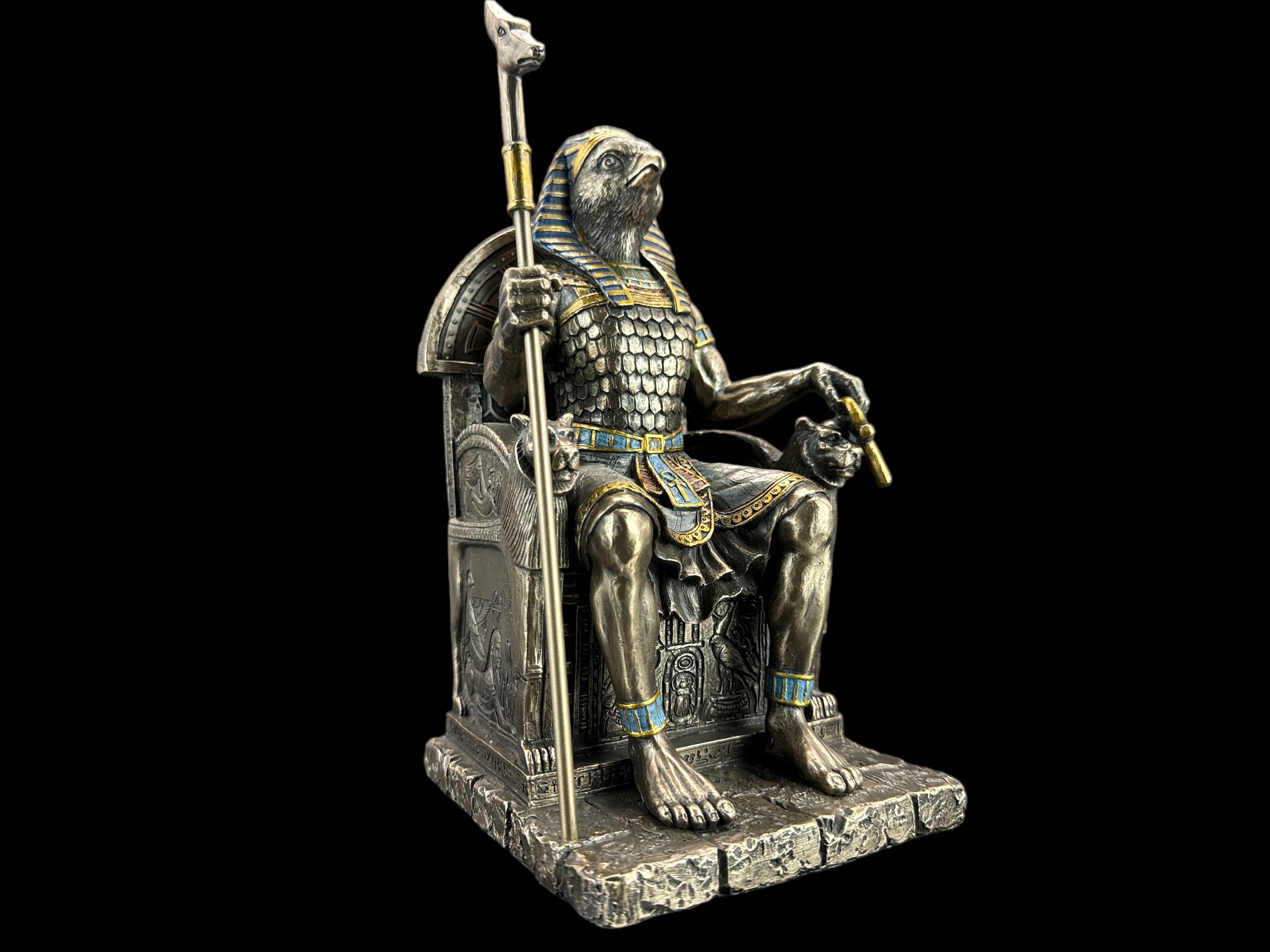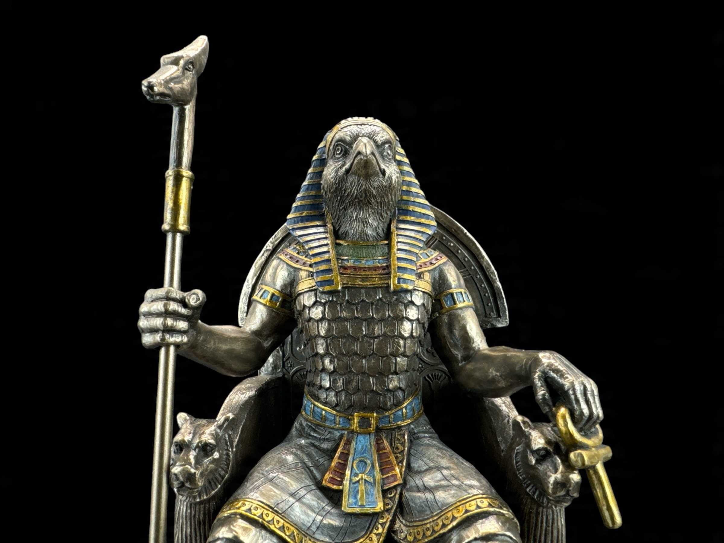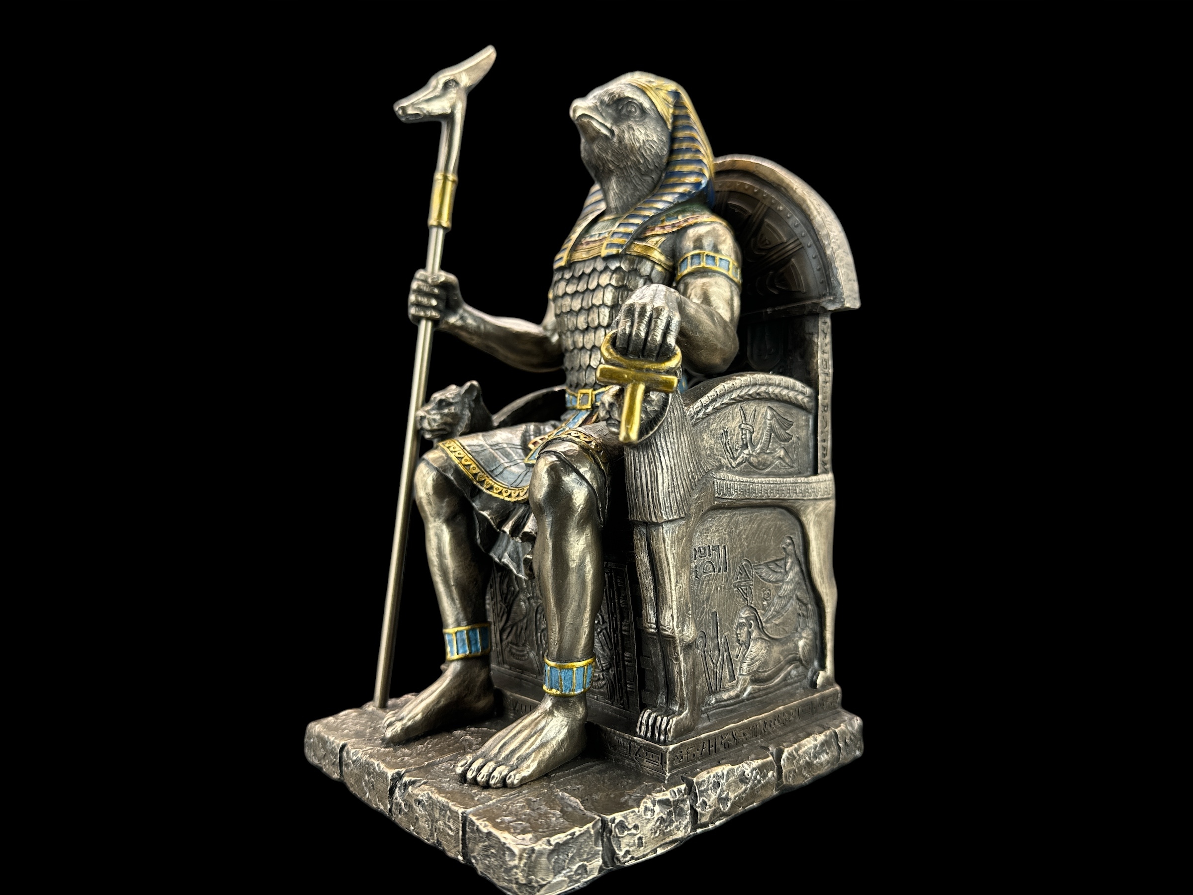 ⚡Египетский бог Гор на троне — скульптура, которая своими прекрасными деталями порадует каждого человека. Это чрезвычайно реалистичная фигура.