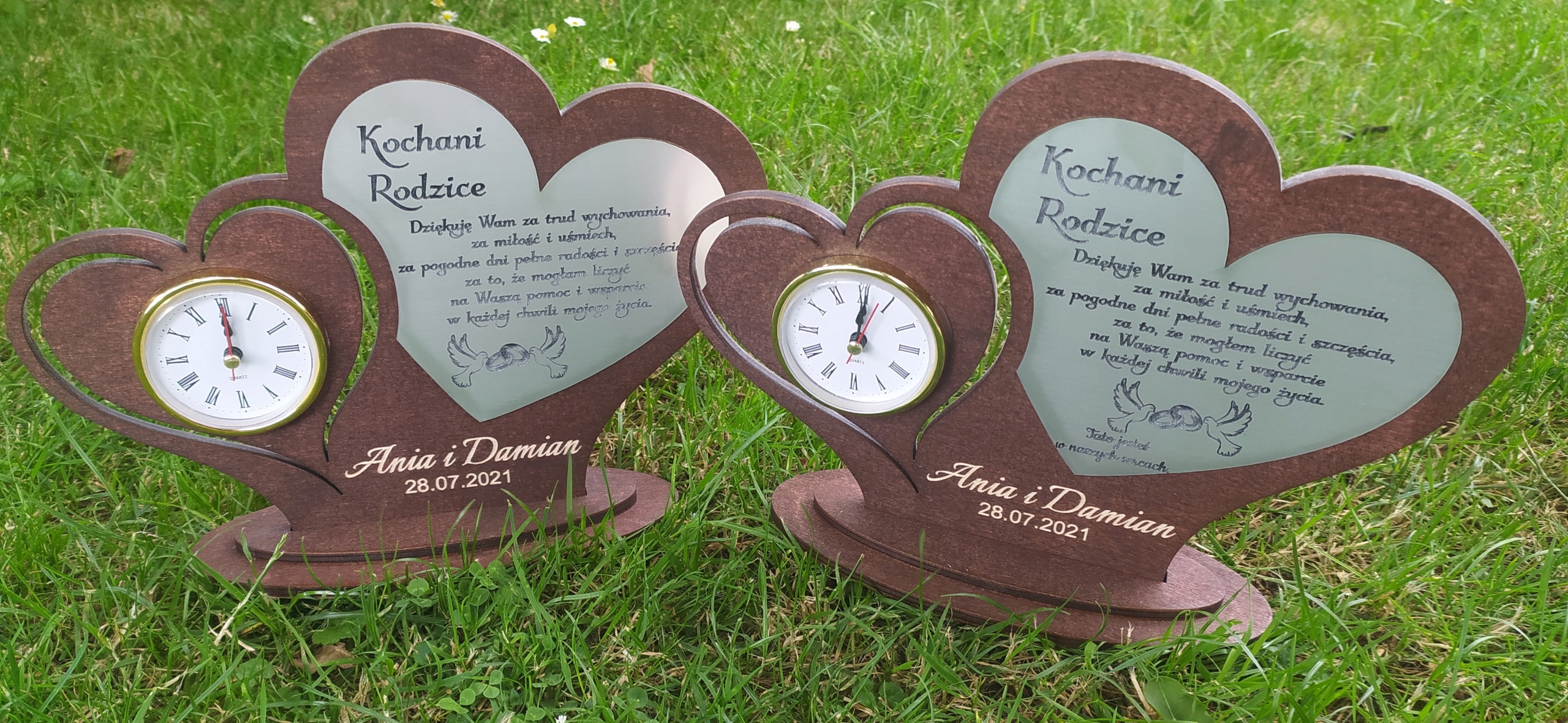 Часы-статуэтки с декоративным рисунком и персонализированным текстом. Благодаря этому подарок станет личным и станет сувениром на всю жизнь.