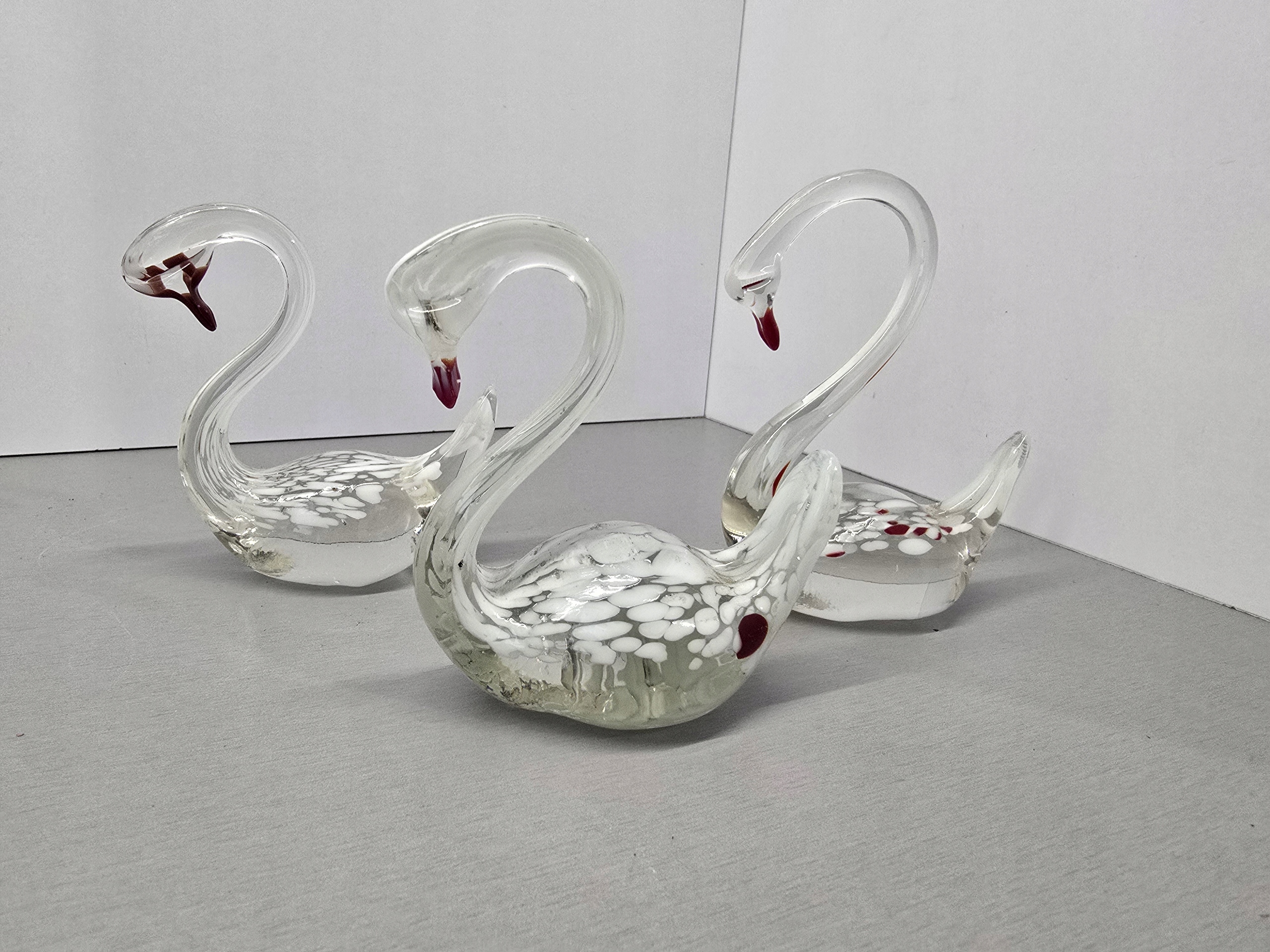 Здравствуйте, продаю набор из 3-х стеклянных лебедей, видно на фотографиях, в видимом состоянии, без повреждений, быстрая и надежная доставка, размеры смотрите на фотографиях, цена за все. Смотрите другие мои объявления.