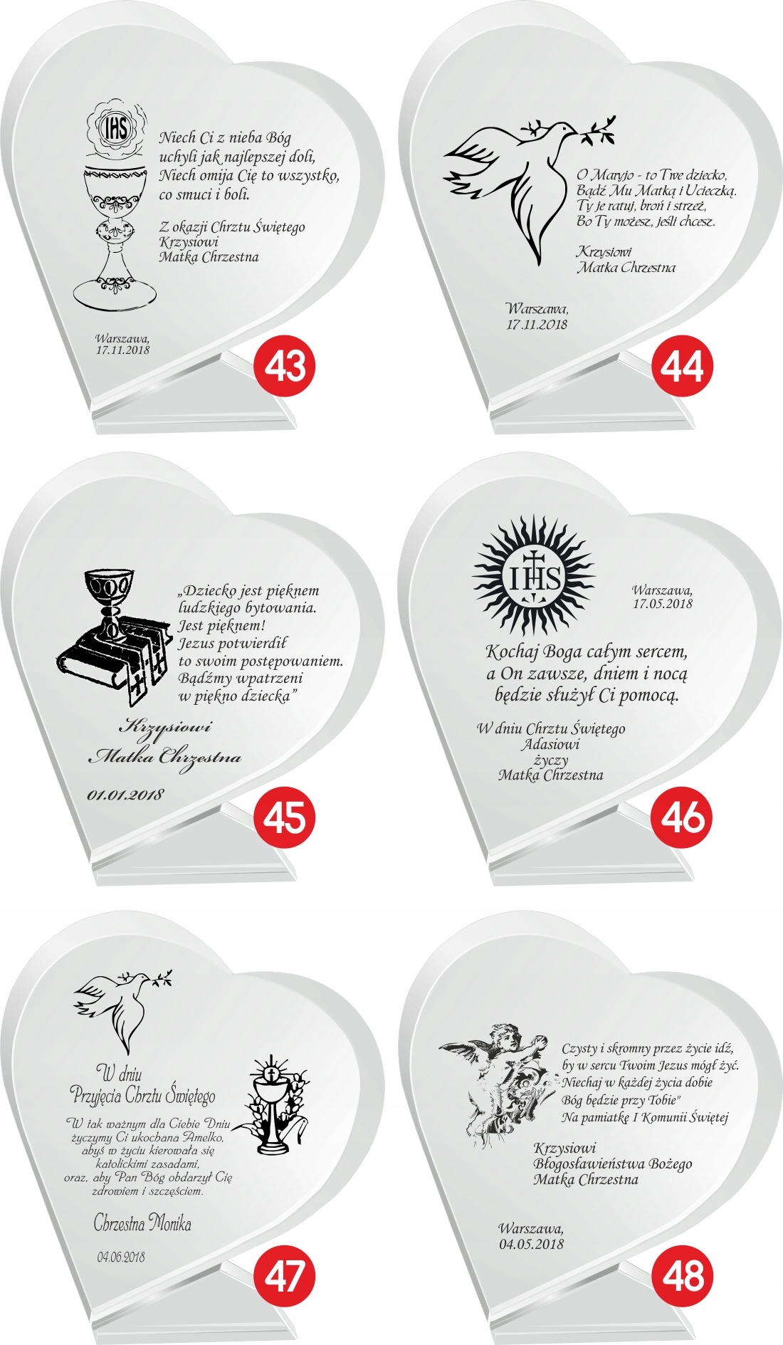 В случае большего количества изменений , пожалуйста, укажите их тщательно - опишите это именно нам. Если выбранный номер гравюры требует дополнительных изменений или других данных, также прикрепите их в примечании для продавца или отправьте отдельный e -mail . В случае неполных данных мы не сможем выполнять и отправлять ваш заказ. Мы не несем ответственности за какие -либо задержки, связанные с не полностью отправленным заказом. Если вам нужно быть дано: мать, папа или другой человек, пожалуйста, опишите это подробно. Продавец сообщает, что стеклянные изделия могут содержать пузырьки воздуха внутри стекла и небольшие контуры их поверхности в результате процесса их производства.