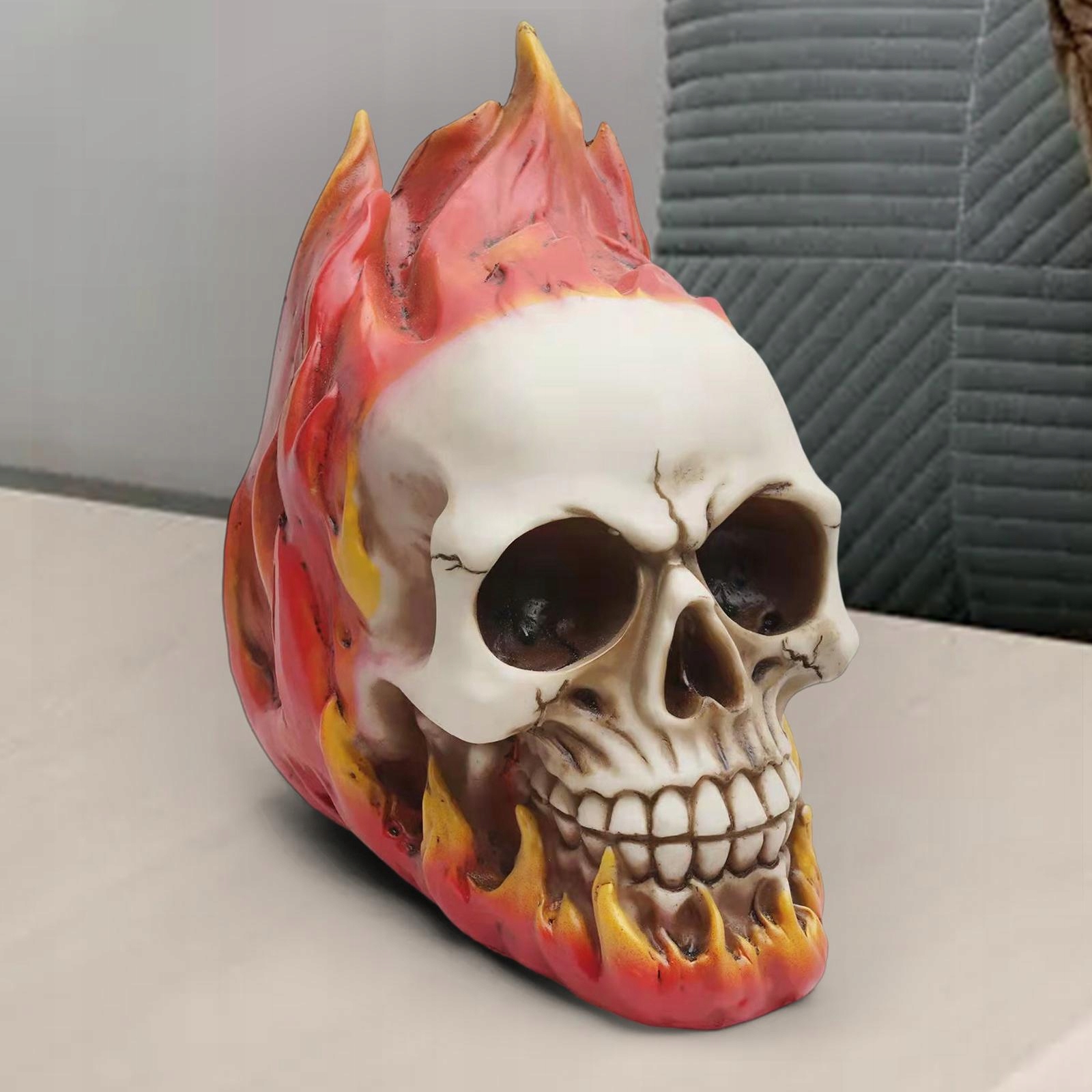 Статуя человеческого черепа для домашнего декора, статуя черепа из смолы с пламенным черепом