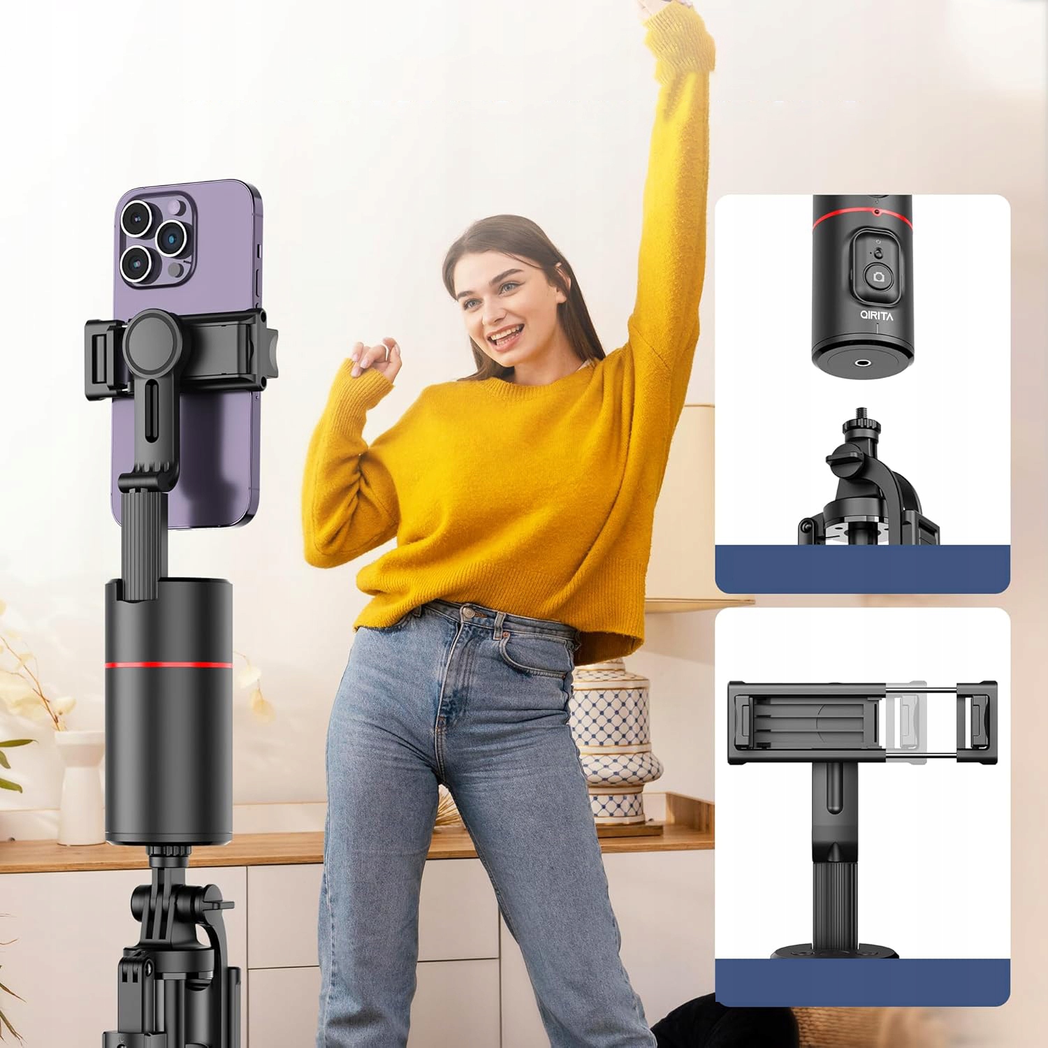 Statyw gimbal tripod 360° śledzenie twarzy obiektów do nagrywania gimbal