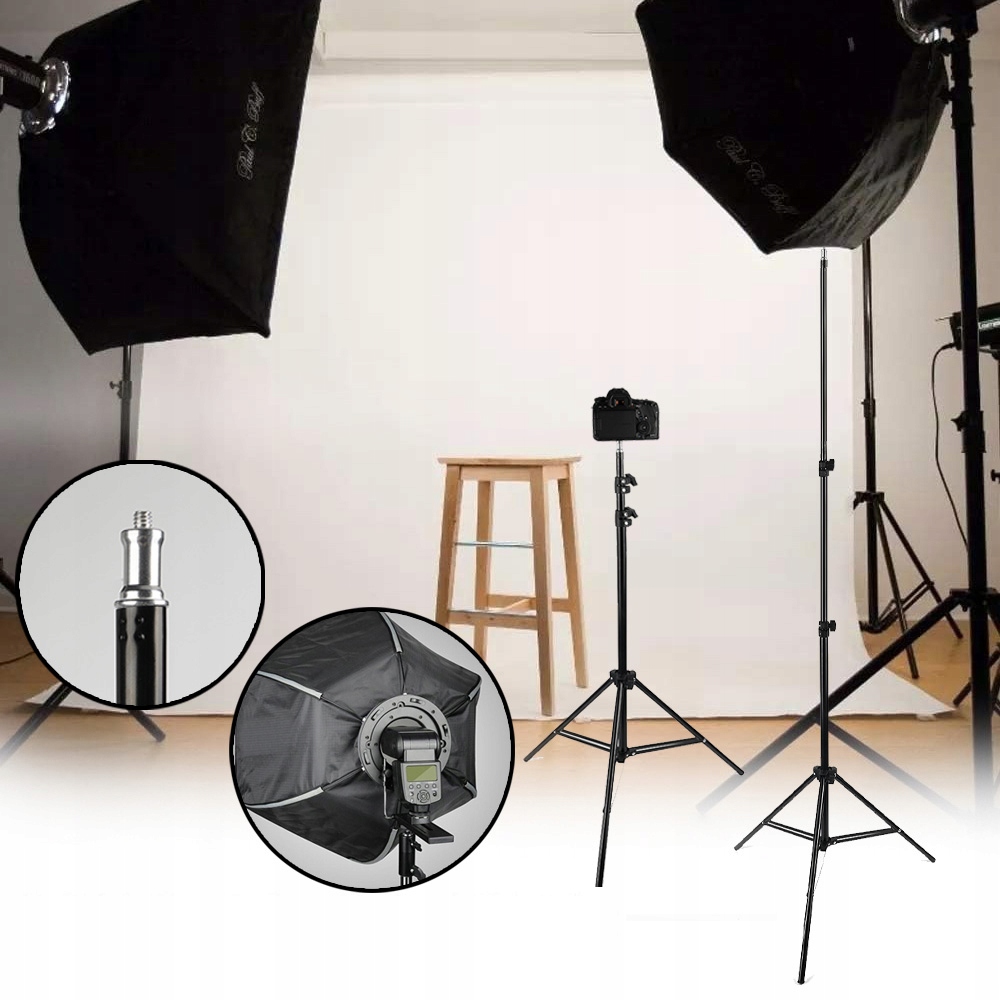 STATYW OŚWIETLENIOWY 2M SKŁADANY 3 NOGI TELESKOPOWY DO LAMPY I SOFTBOXU