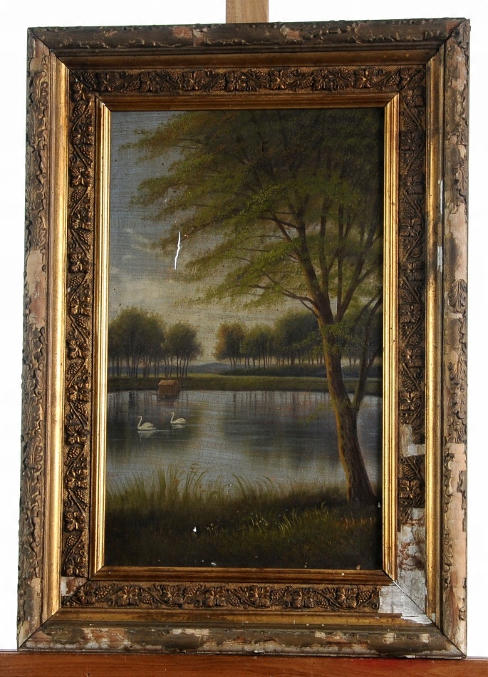 «Став с лебедей» очень старая красивая нефтяная картина !!!