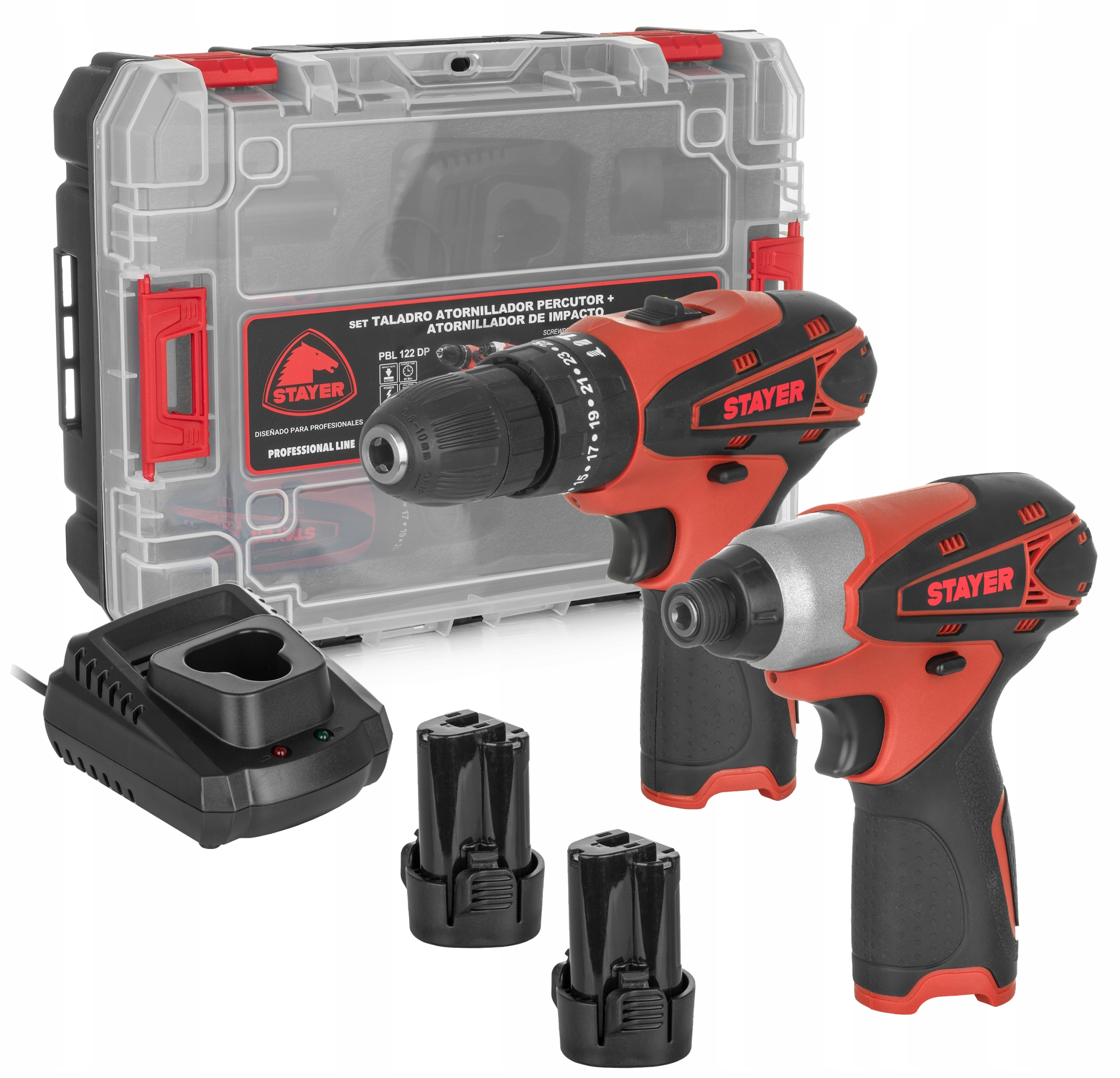 STAYER КОМПЛЕКТ 12V УДАРНИЙ ДРИЛЬ + ГАЙКОВЕРТ 2X2AH КЕЙС