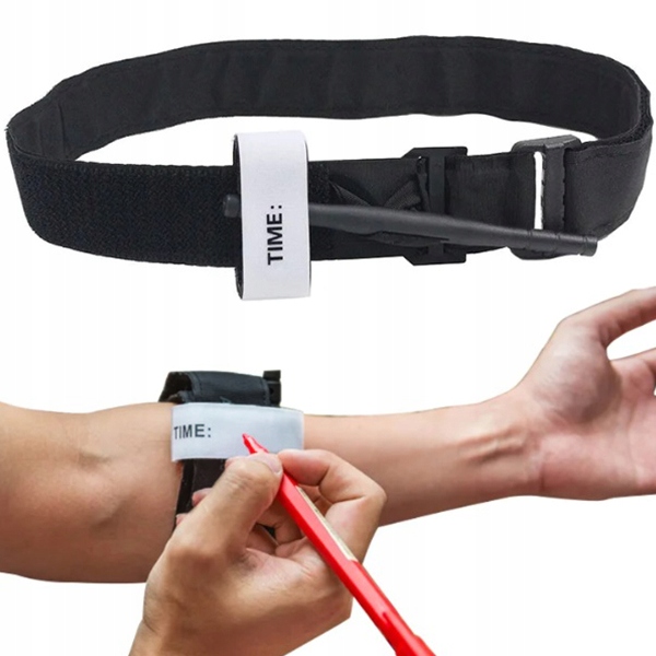 Откройте интерьер и поместите его вокруг конечности над местом кровотечения. затем крепко затяните полосу , повернув зажимную стержень во время вытягивания ремня), до тех пор, пока кровотечение остановится. Поместите стержень в клип и блок. полоса должна быть плотно сжата, но недостаточно для сжатия нервов или нанесения дополнительного повреждения. В группе вы можете написать Time of Foundation , эта информация будет полезна для медицинского персонала, когда наступит время его удаления.