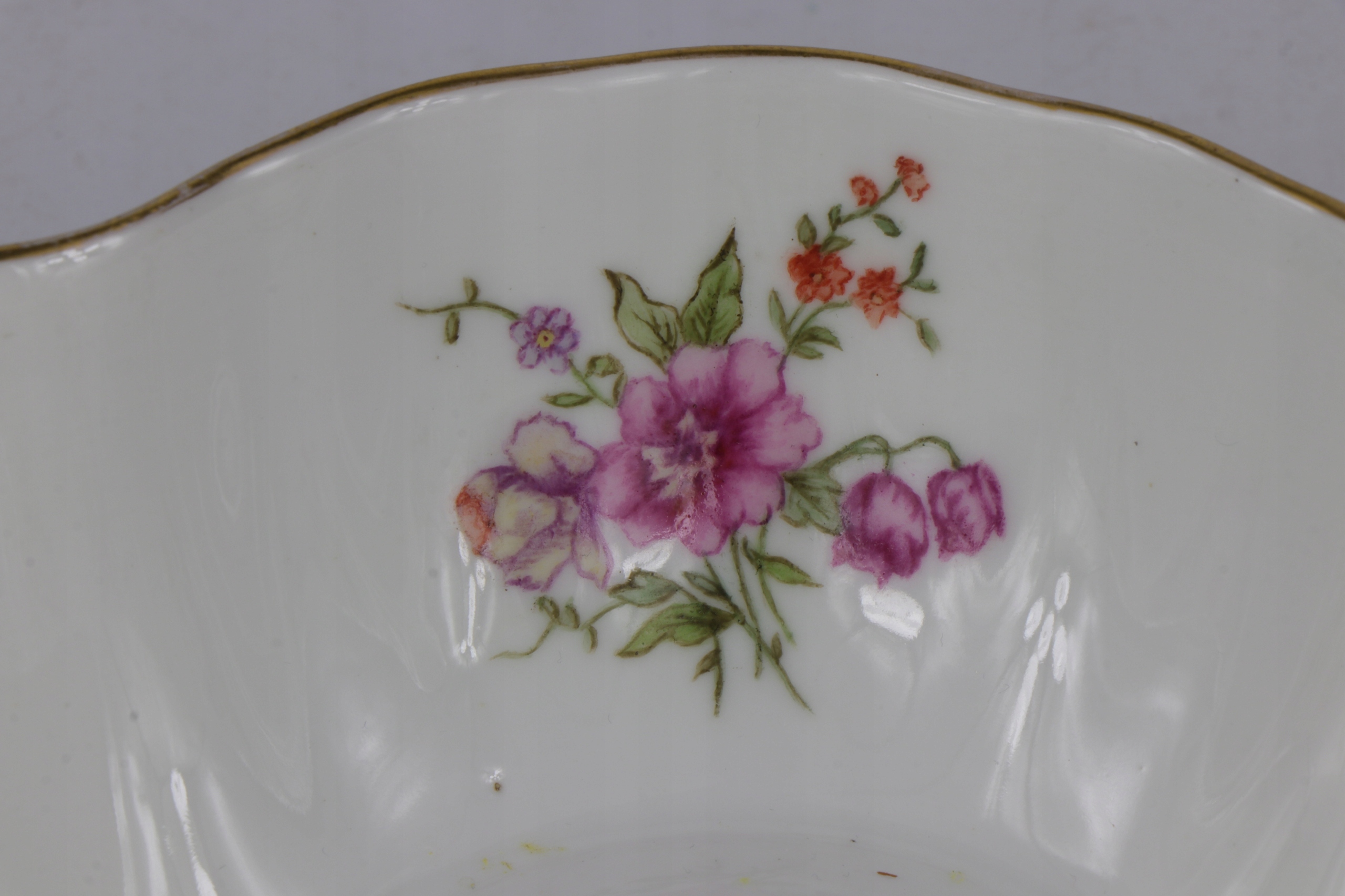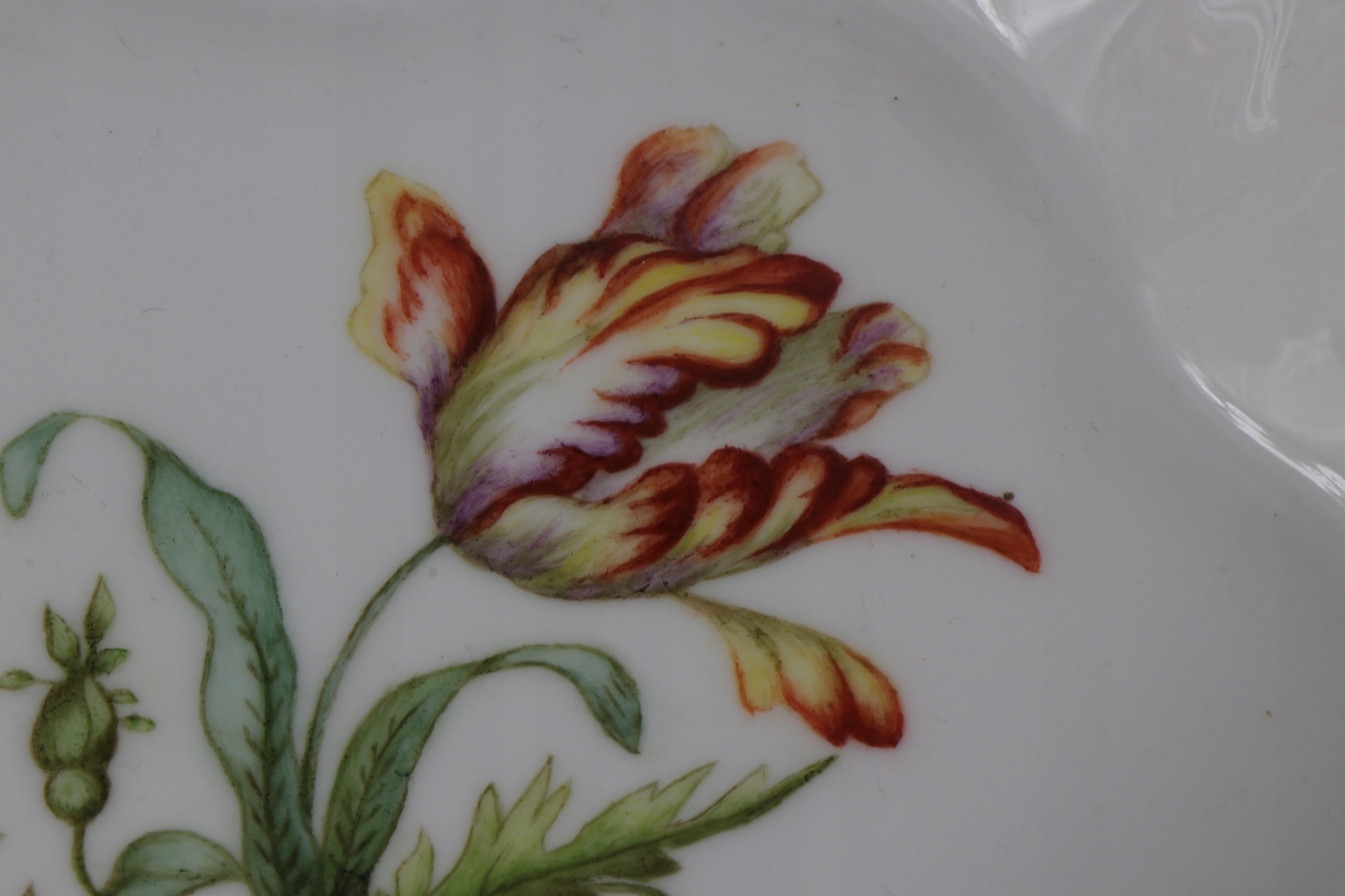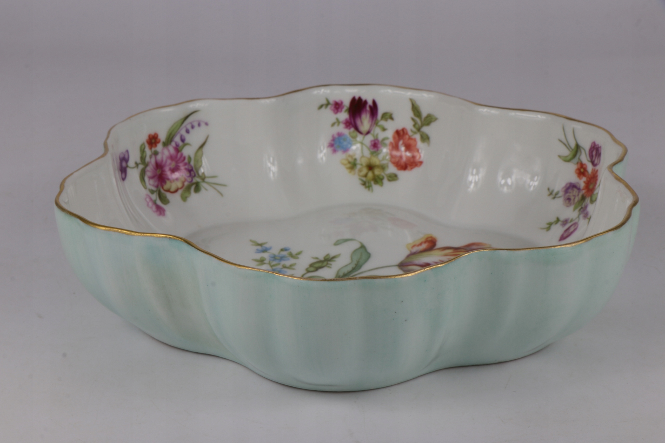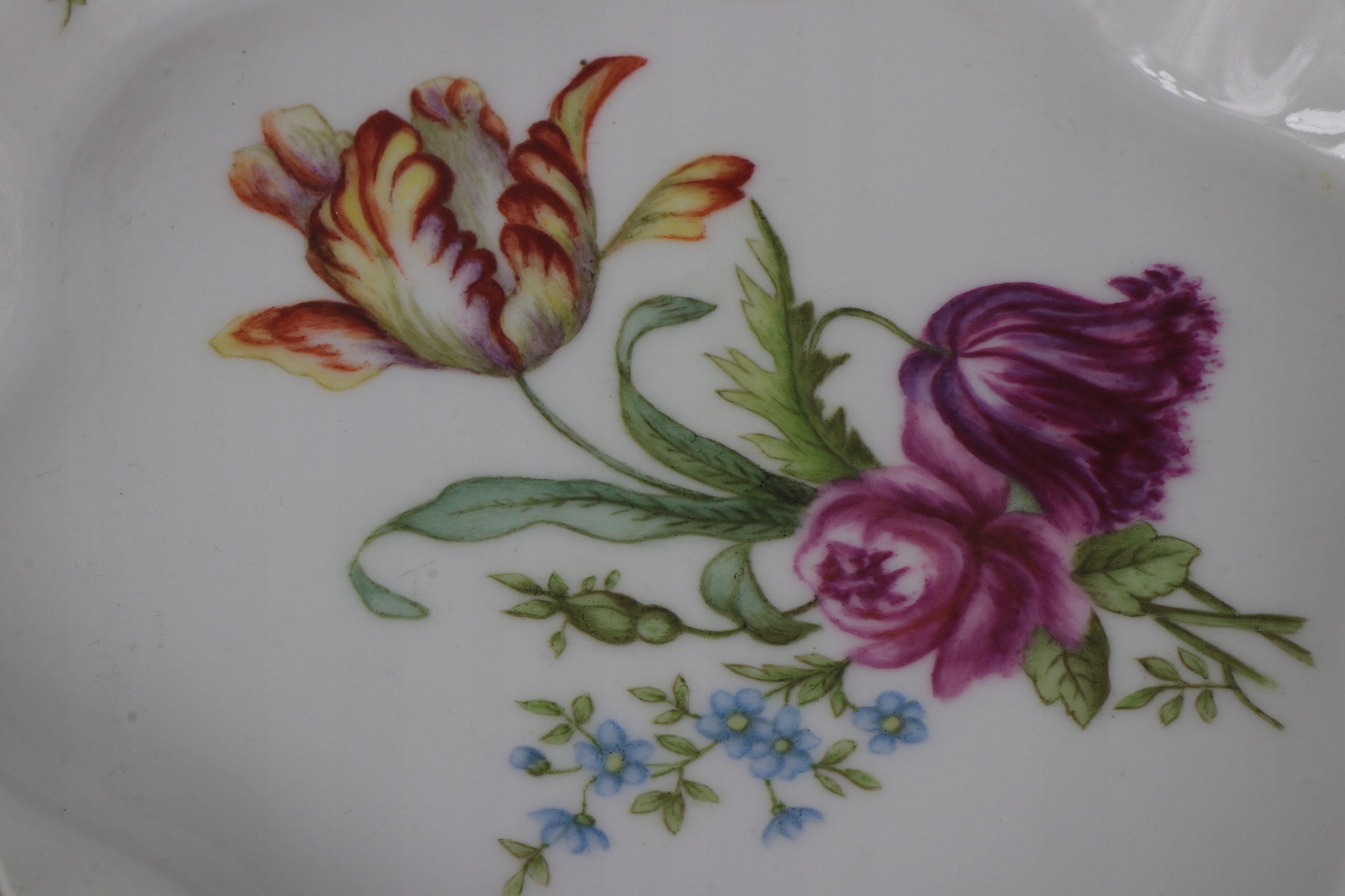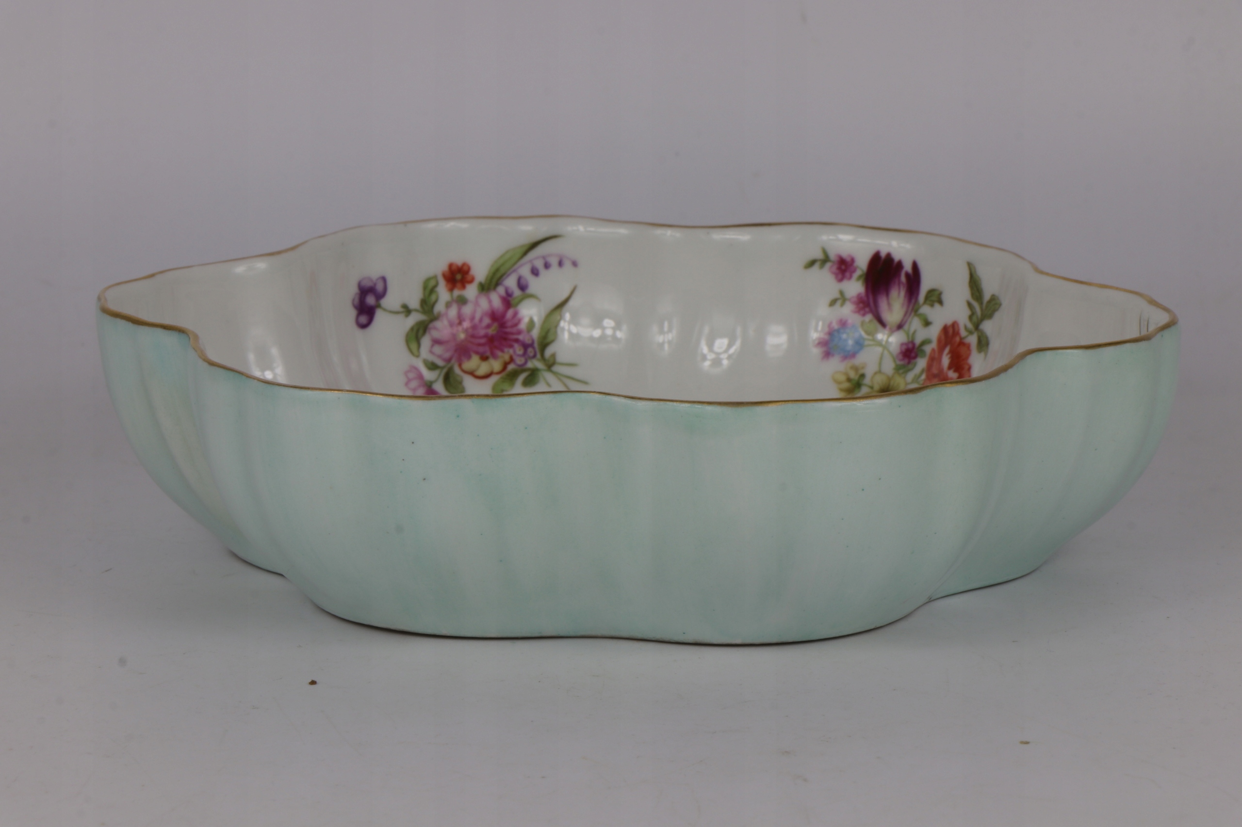 Фарфоровая чаша, расписанная вручную орнаментом из цветов тюльпана. Ободок чаши фисташкового цвета с позолоченным верхним краем, тарелка в форме цветка ромашки. Очень редкий коллекционный фарфор.