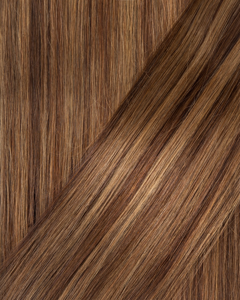 100% натуральные волосы на заколке 43 см 3 ленты балаяж цвет - коричневый и темно-русый #4/8