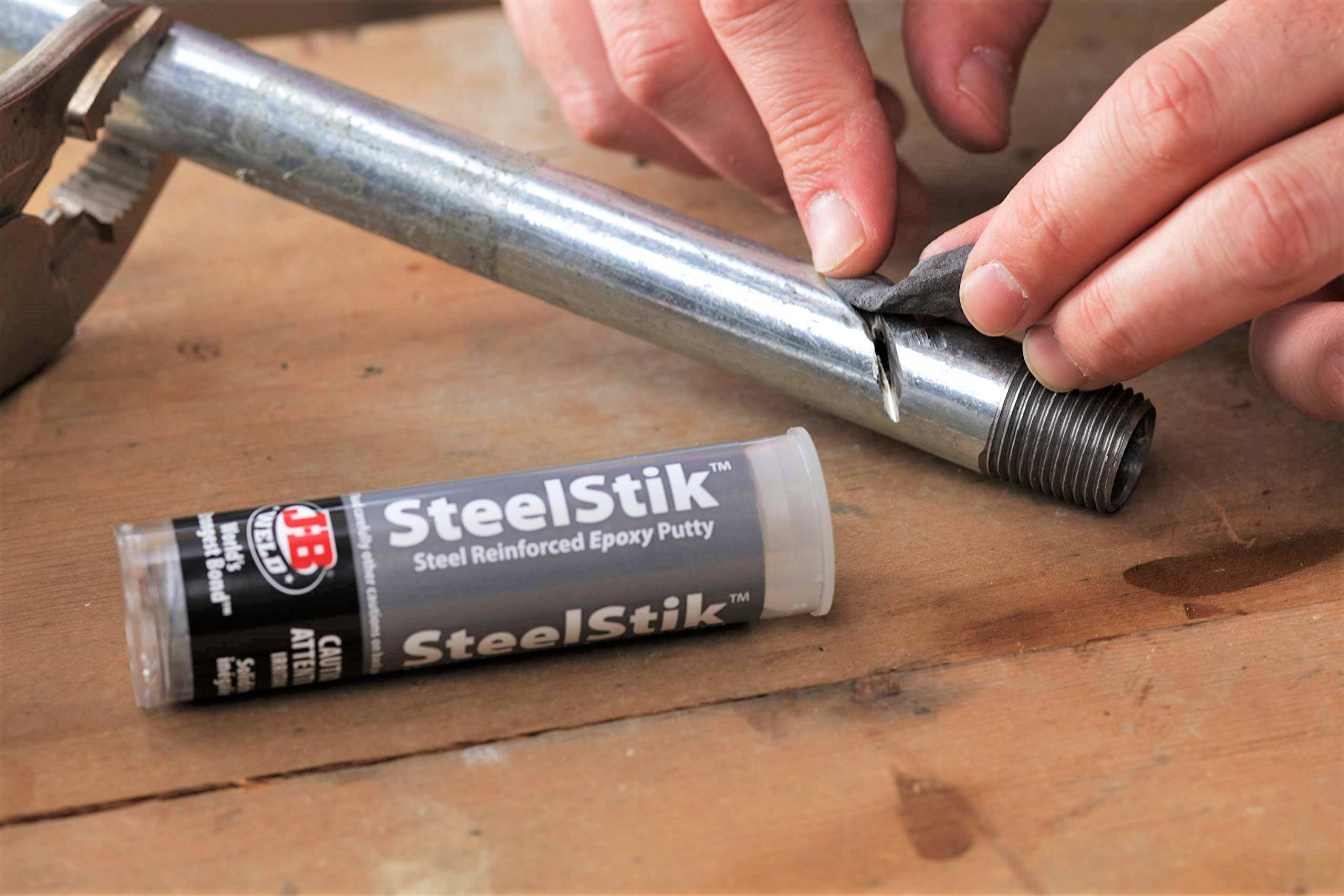SteelStik™ — это замешиваемая вручную эпоксидная замазка, армированная нержавеющей сталью, которая быстро восстанавливается. или восстанавливает все, что сделано из металла. При смешивании он создает полимерную смесь промышленной прочности, которой можно придавать определенные формы или использовать для изготовления, ремонта и ремонта стальных компонентов. SteelStik™ схватывается через 3–5 минут, его можно сверлить, нарезать резьбу, подвергать механической обработке, шлифовать, напиливать и красить через 60 минут.