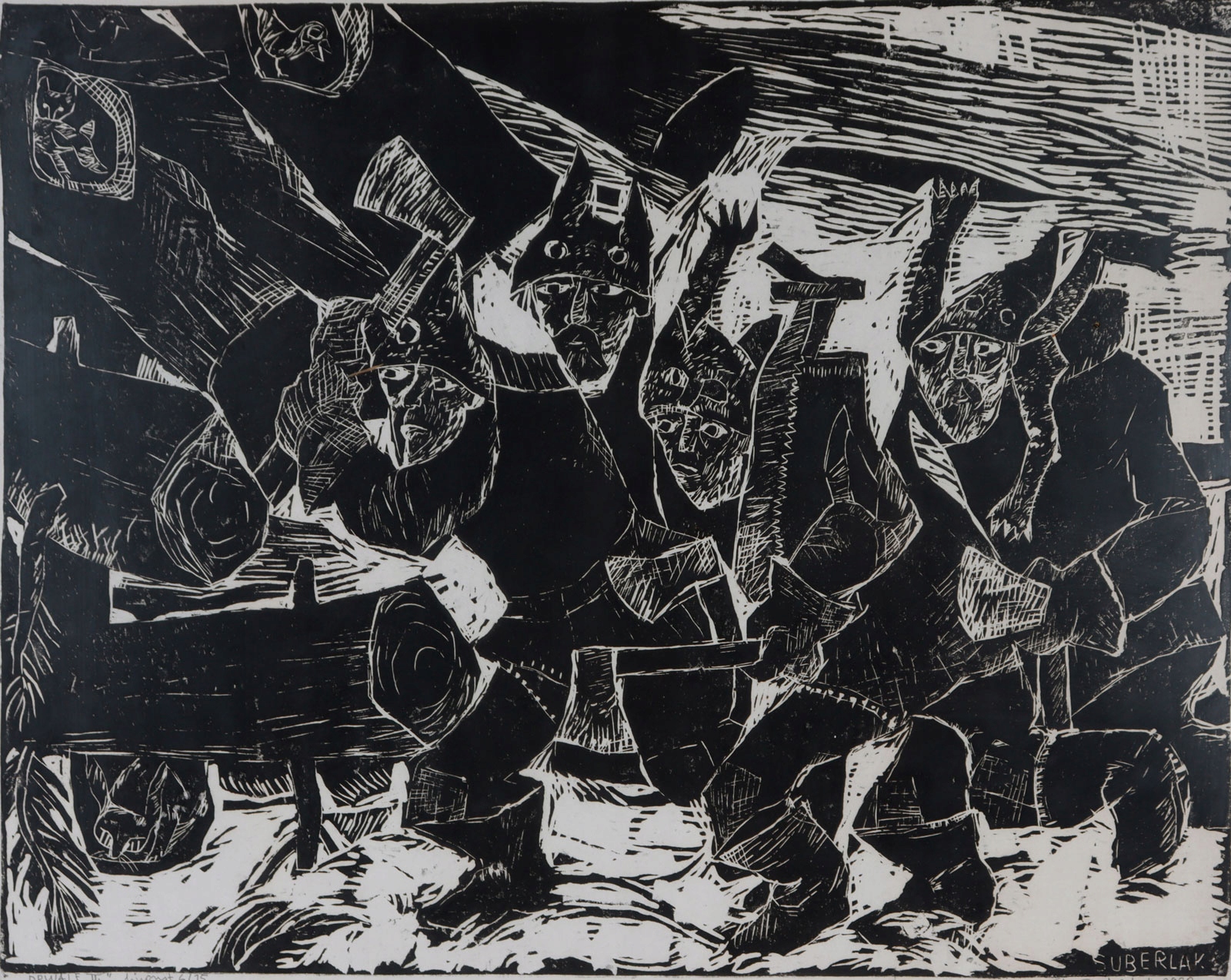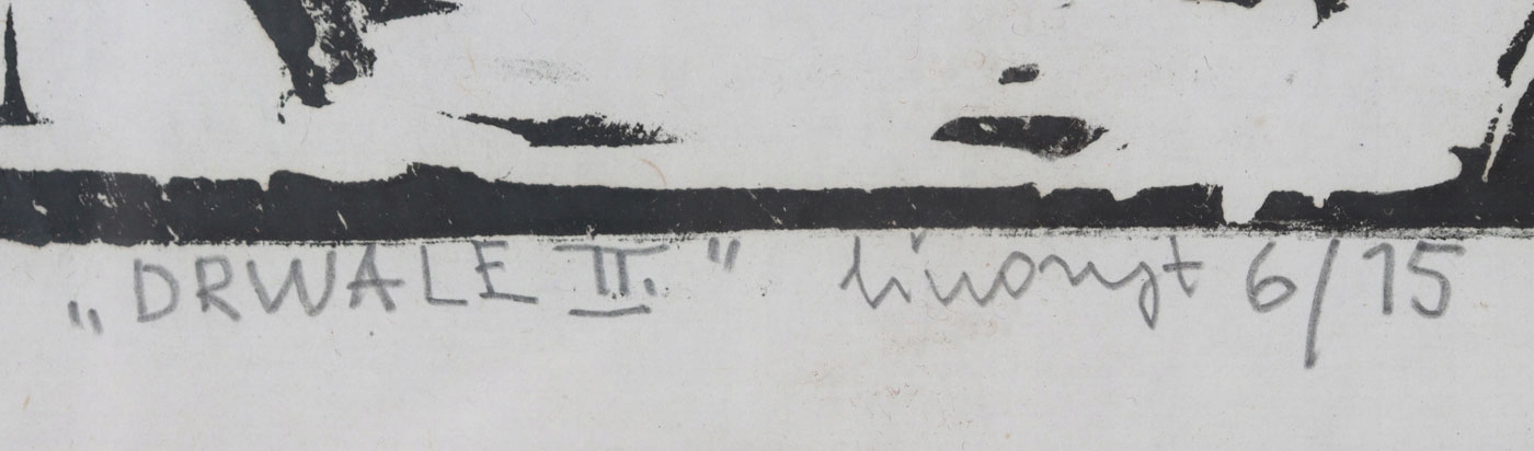 Техника: линогравюра/бумага. Работа подписана на доске, подписана и описана от руки карандашом: Drwale II | линогравюра 6/15 | Св.Суберлак 1980 г.