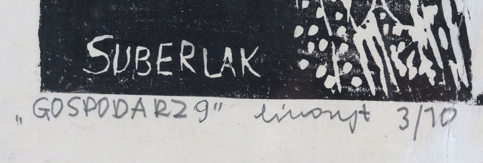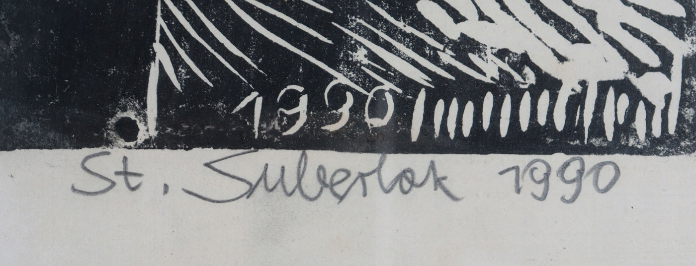 Техника: линогравюра/бумага. Работа подписана на доске, подписана и описана от руки карандашом: Ведущий 9 | линогравюра 3/10 | Св.Суберлак 1990 г.