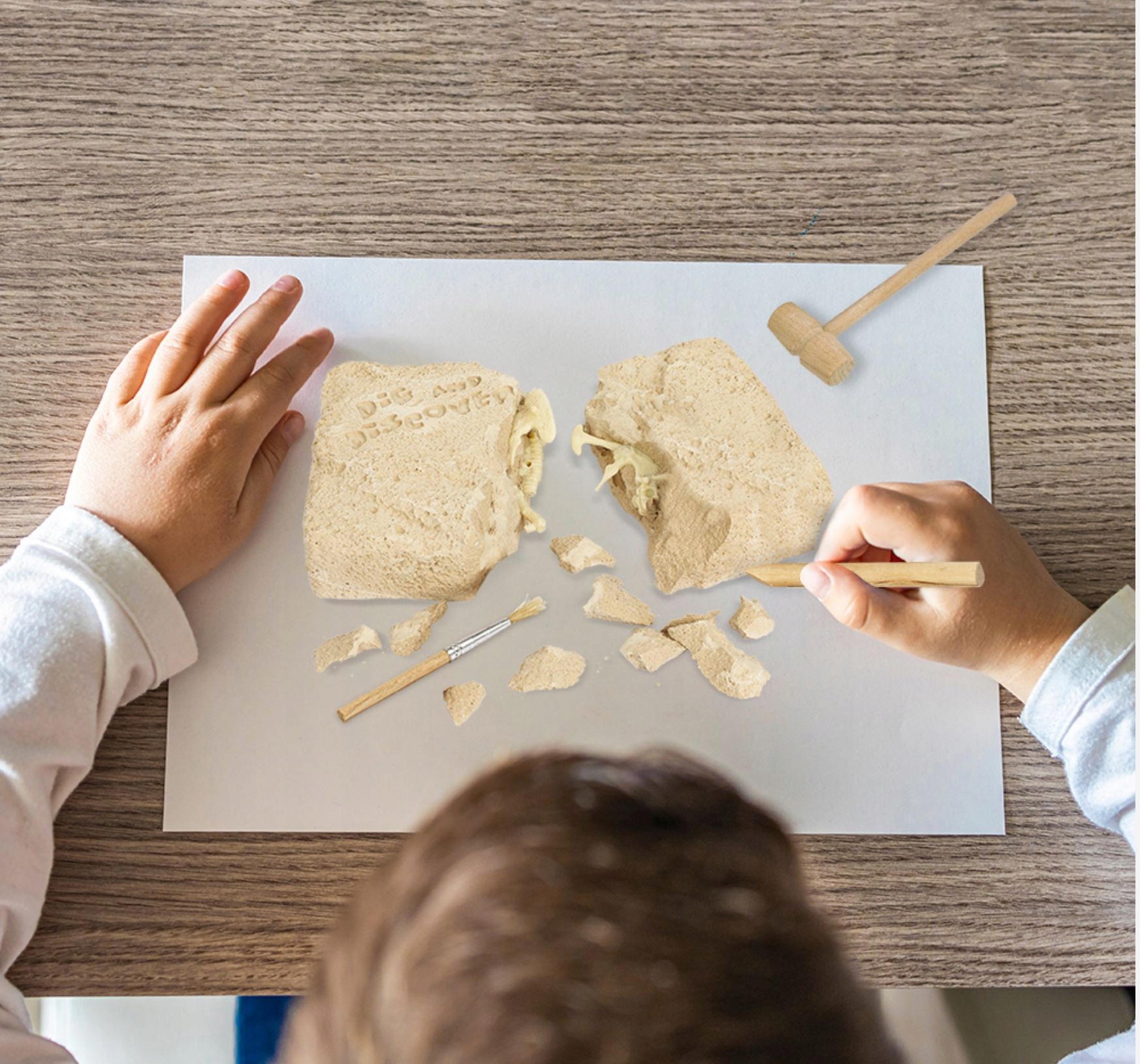 Степень для молодого ученого. Скелет динозавра скрыт в блоке, который должен быть вырыт с помощью инструментов, прикрепленных к набору, а затем подключить кости, чтобы получить скелет стегозавра.