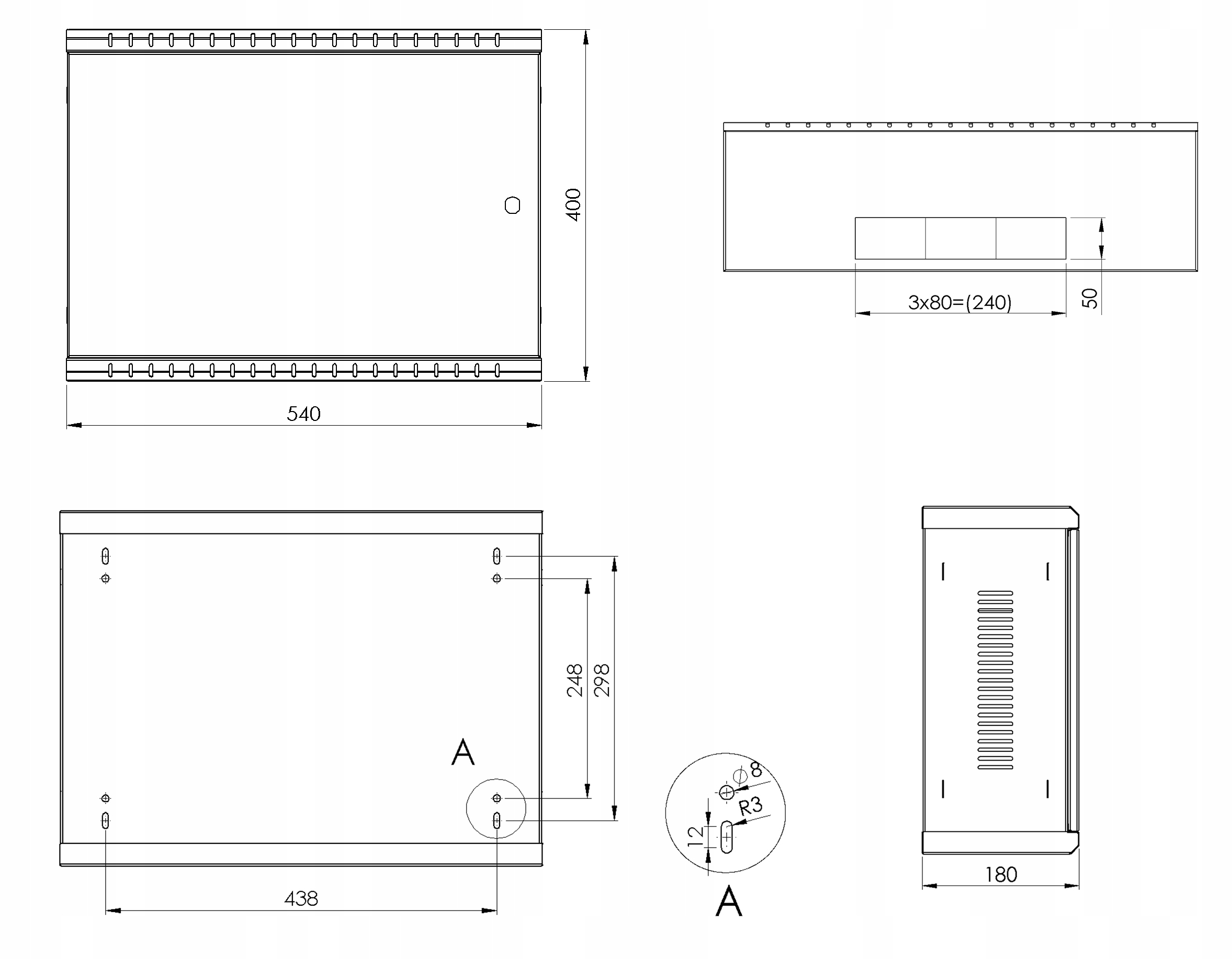 - 19-дюймовый стоечный шкаф высотой 3U и высотой 180 мм, серый