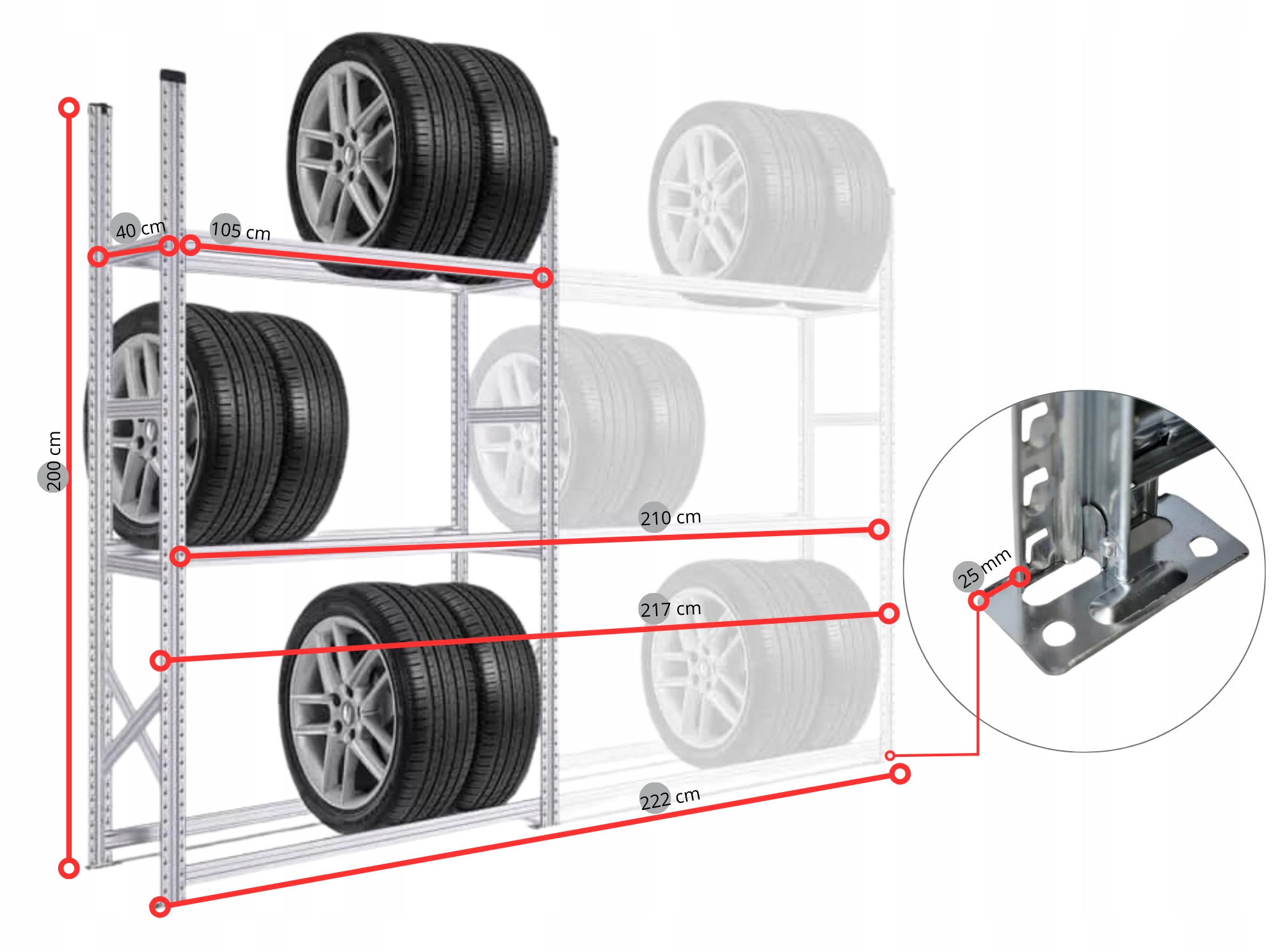 Стелаж для шин, дисків, 24 шт., оцинкована сталь, набір 2x МІЦНИЙ І МІЦНИЙ