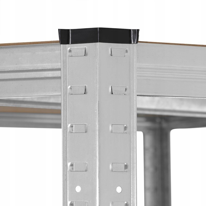 Полка позволяет оптимально использовать углы. Складской стеллаж изготовлен из высококачественной оцинкованной стали. Проставки для полок обеспечивают большую устойчивость. Полка имеет общую грузоподъемность 875 кг. Резиновые накладки на ножках защищают пол. Полки из МДФ толщиной 5 мм свободно конфигурируются, крепятся и снимаются. В сочетании с системой сменных рам высота полки может быть определена индивидуально – быстро трансформируемая полка помещается под лестницей или наклонным потолком. Примечание. Для дополнительной устойчивости можно прикрепить полку к стене с помощью шурупов.
