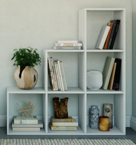 Белый цвет книжного шкафа выглядит очень современно, поэтому он подойдет к стильным композициям.