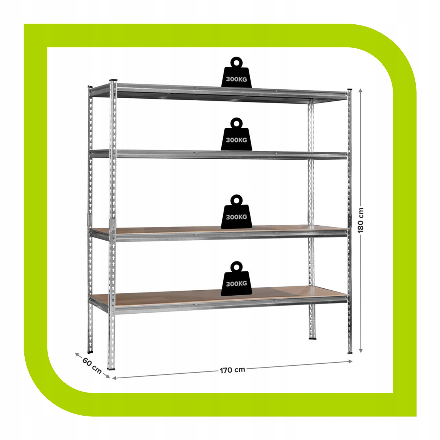 МЕТАЛЛИЧЕСКАЯ ПОЛКА ДЛЯ МАСТЕРСКОЙ, 1200 КГ, 4 ПОЛКИ, МДФ
