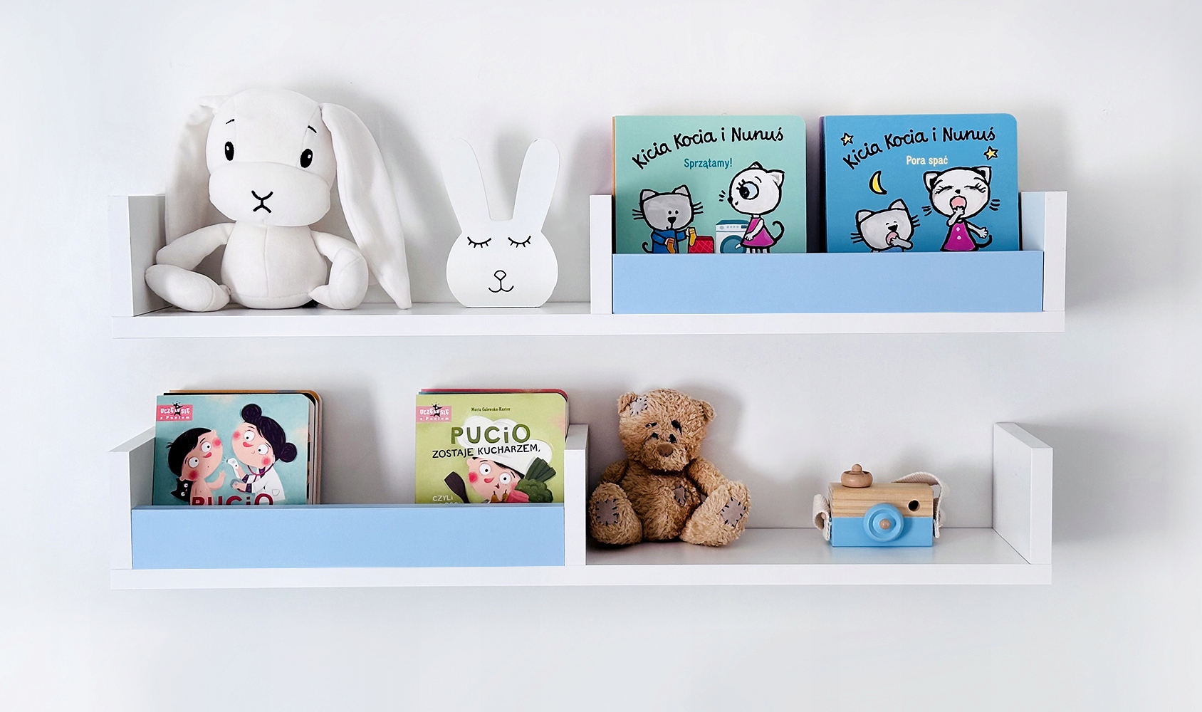 Полки хорошо впишутся в композицию в стиль как скандинавский, так и минималистичный. Они также прекрасно впишутся в сказочный стиль детской комнаты. Они белого цвета, поэтому подойдут к любому цвету фона стены. Используйте его, как хотите!