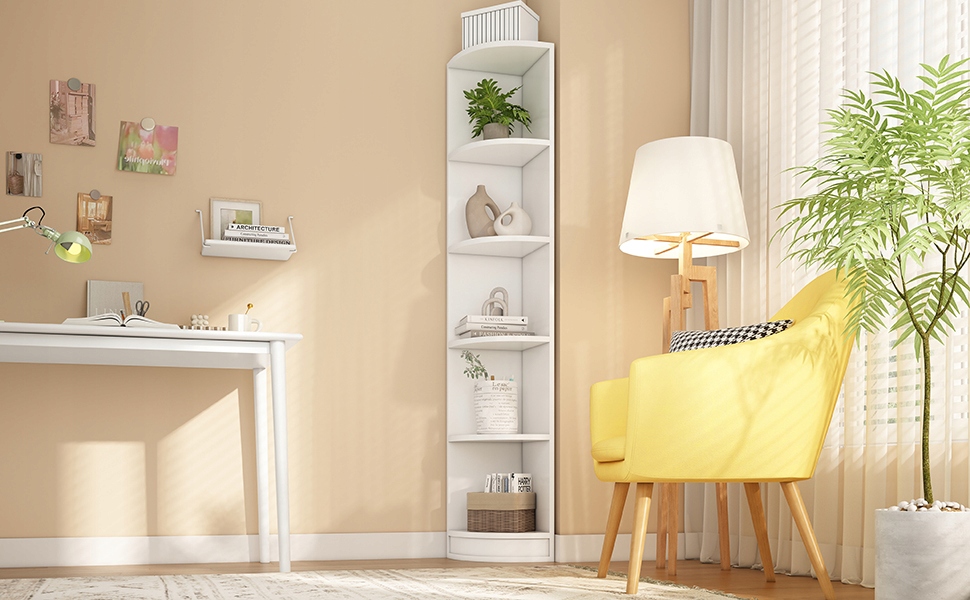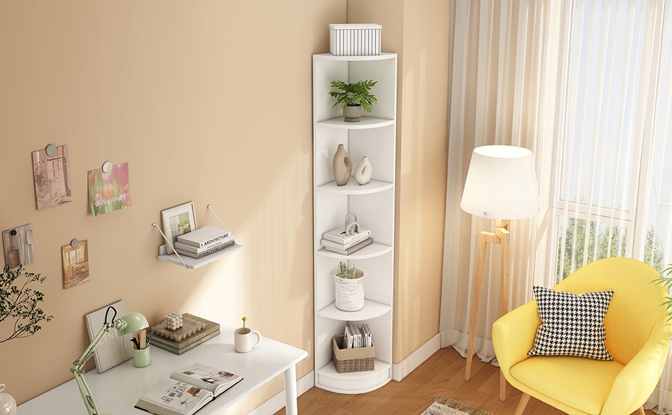 Пятиуровневый дизайн, достаточно места для хранения: книжный шкаф имеет пять уровней, каждый из которых обеспечивает достаточно места для книг, украшений или других мелких предметов, удовлетворяя ваши разнообразные потребности в хранении и поддерживая чистоту и порядок вашего пространства.