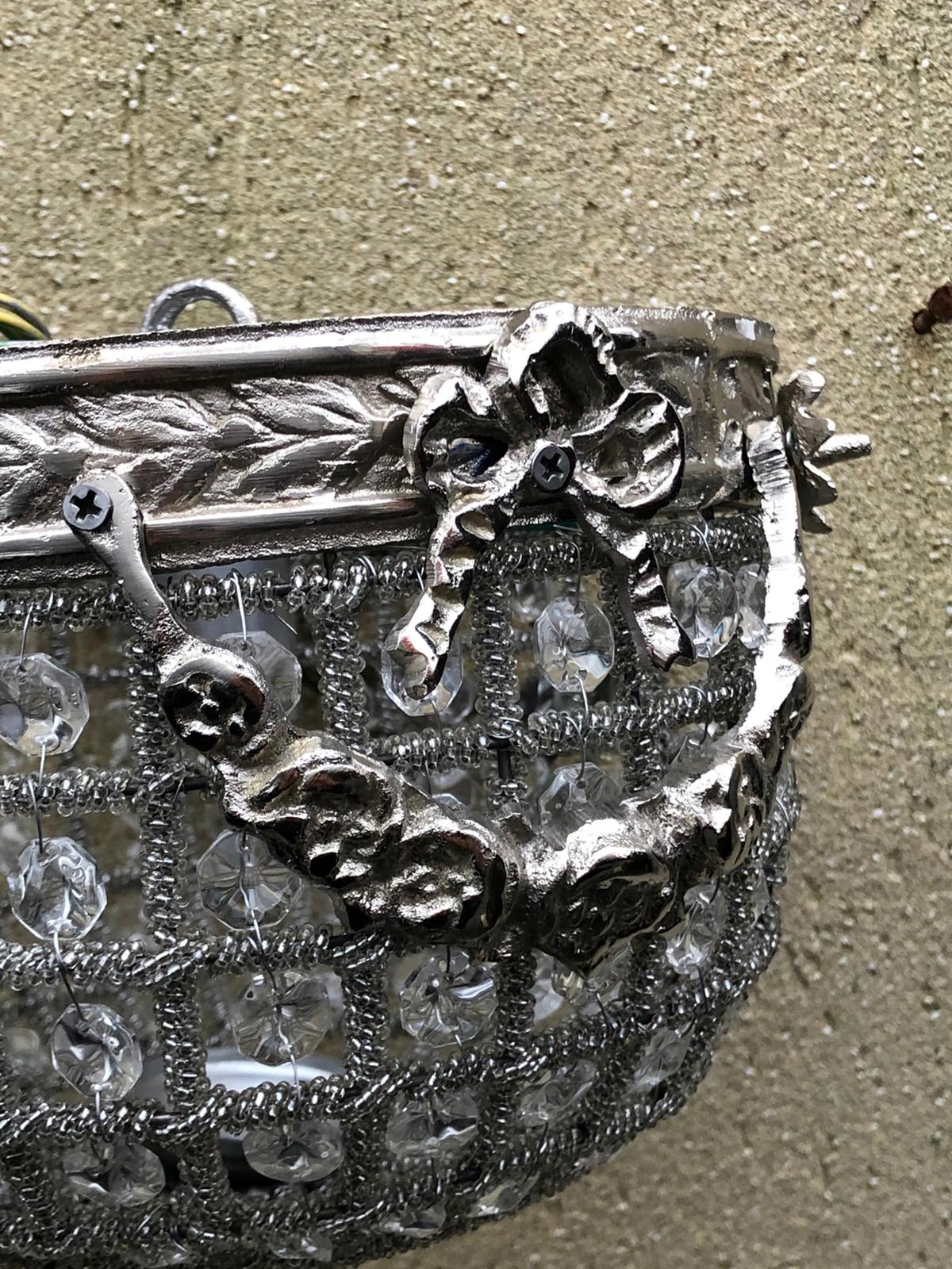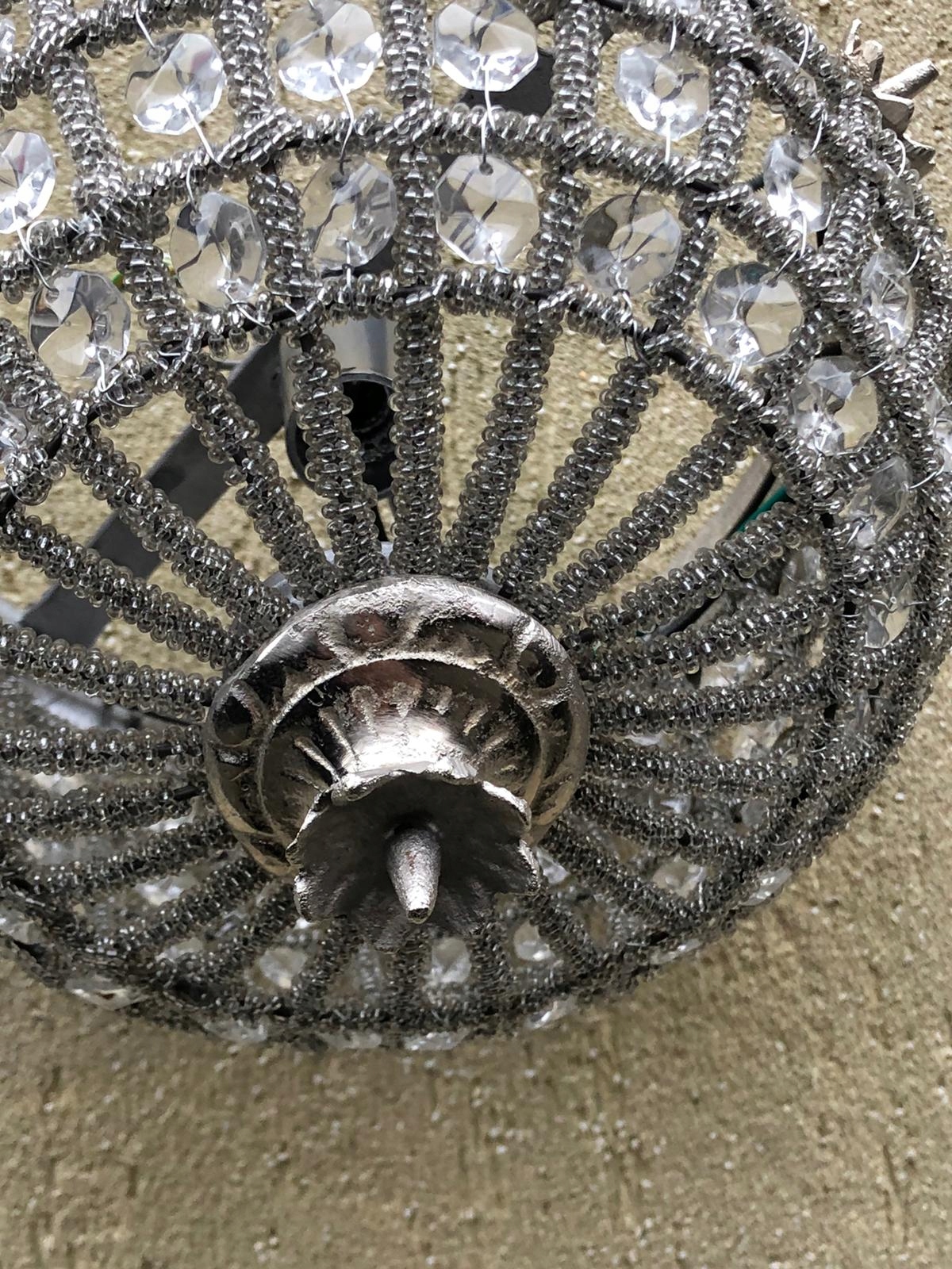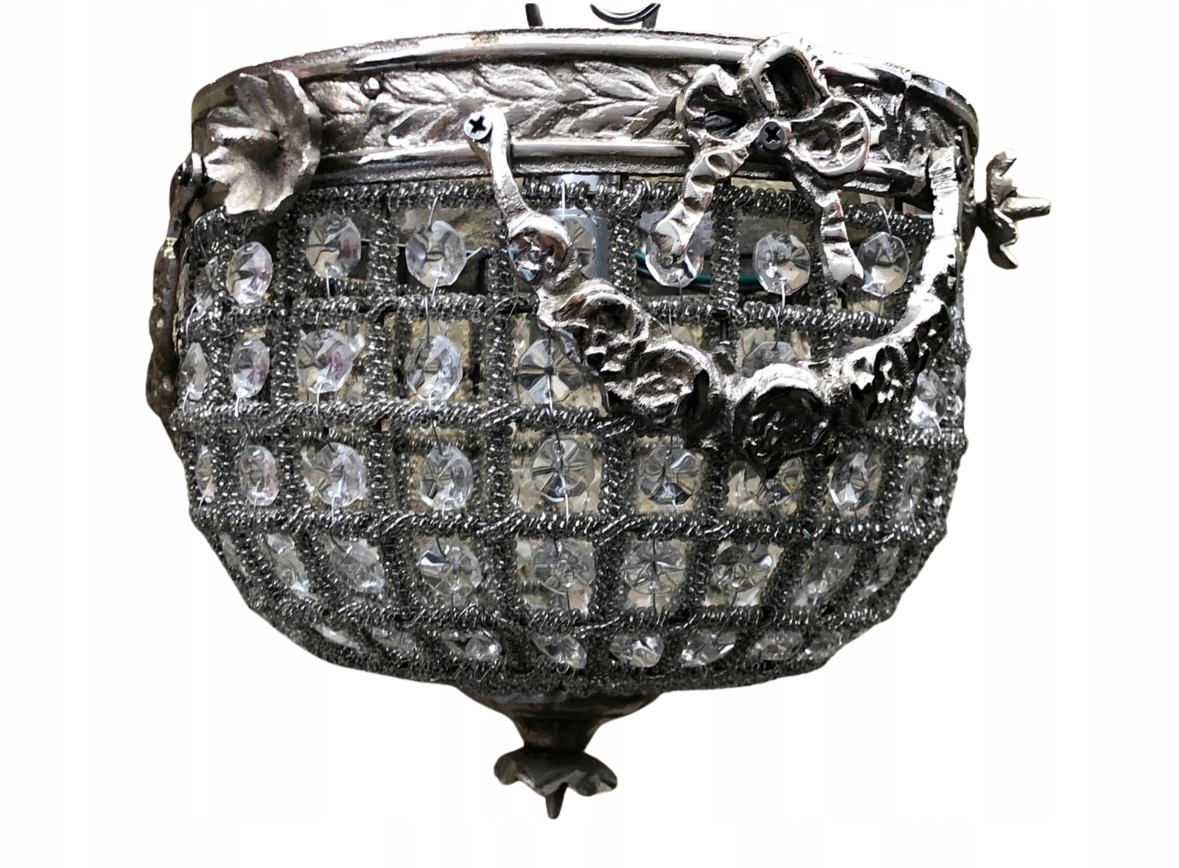 ПОТОЛОЧНАЯ ЛЮСТРА С ХРУСТАЛАМИ И ЛАТУНЬЮ, диаметр 24 см, серебро
