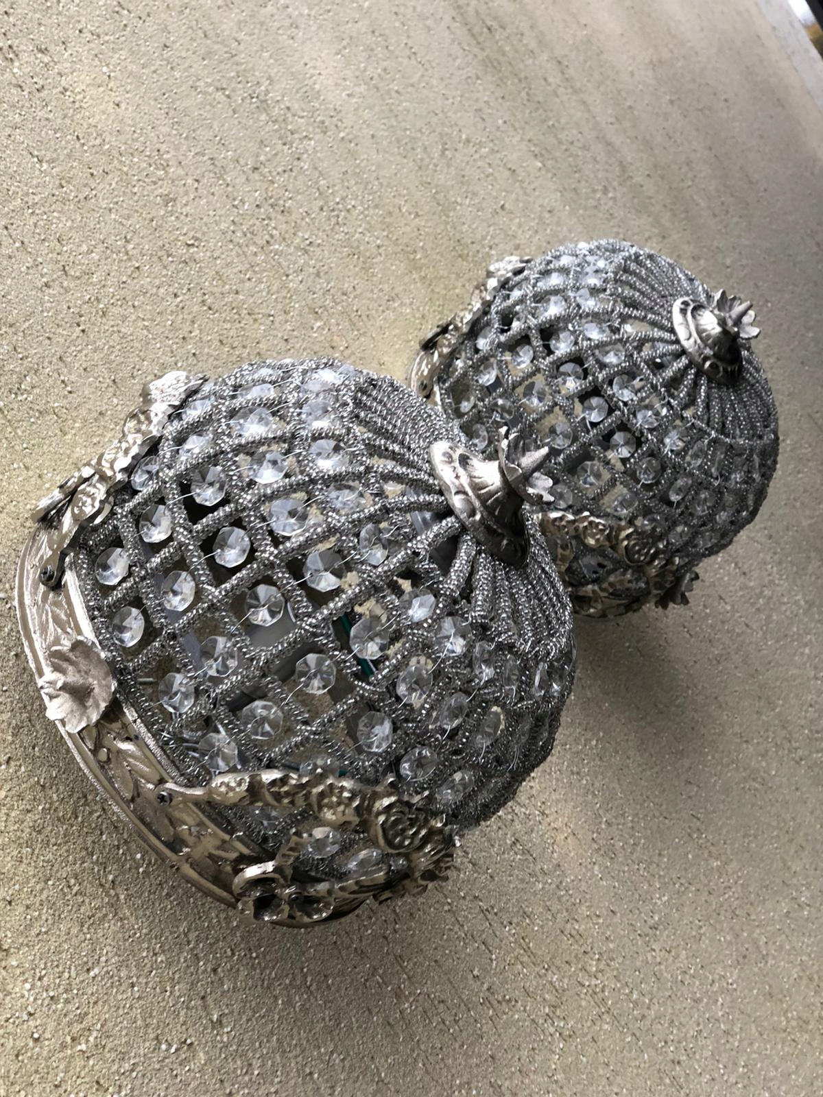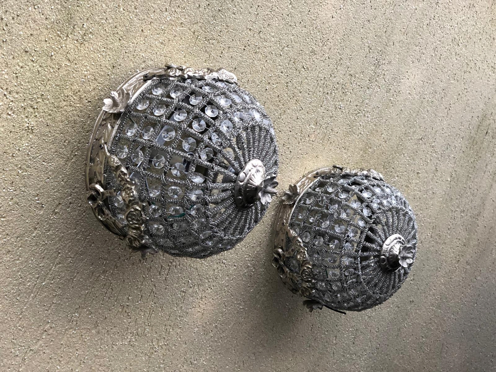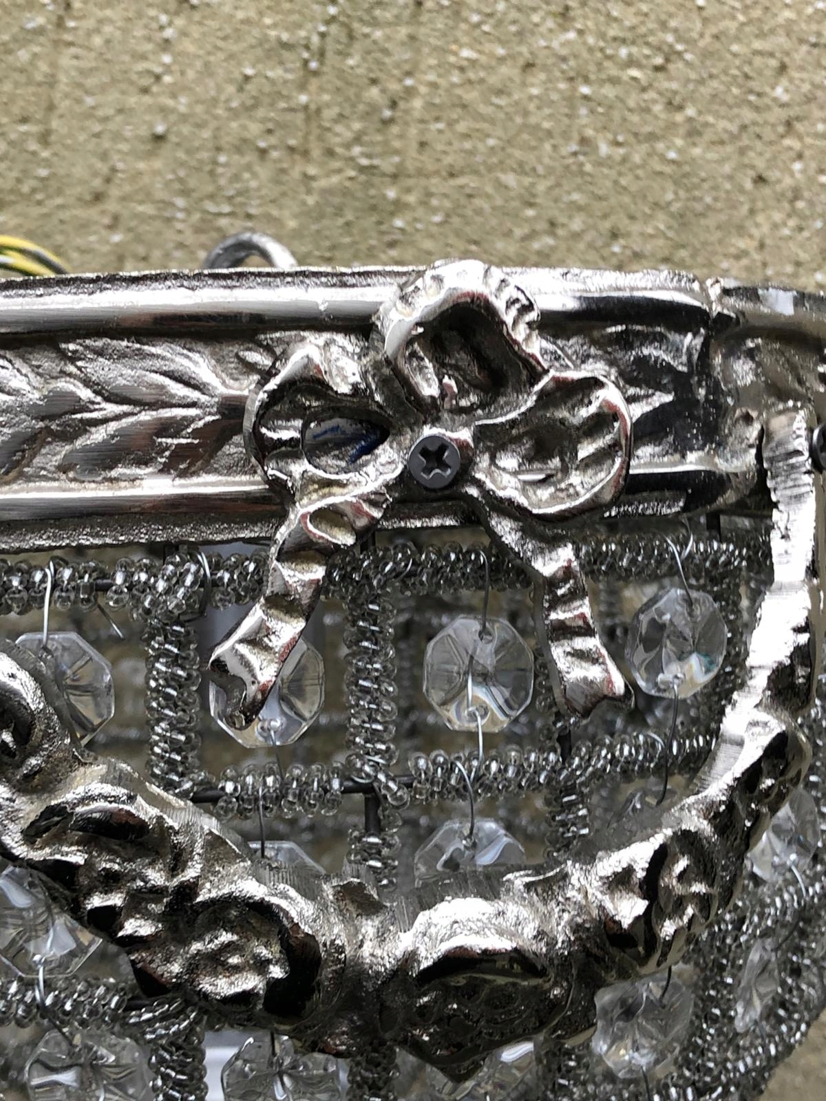 ПОТОЛОЧНАЯ ЛЮСТРА С ХРУСТАЛАМИ И ЛАТУНЬЮ, диаметр 24 см, серебро