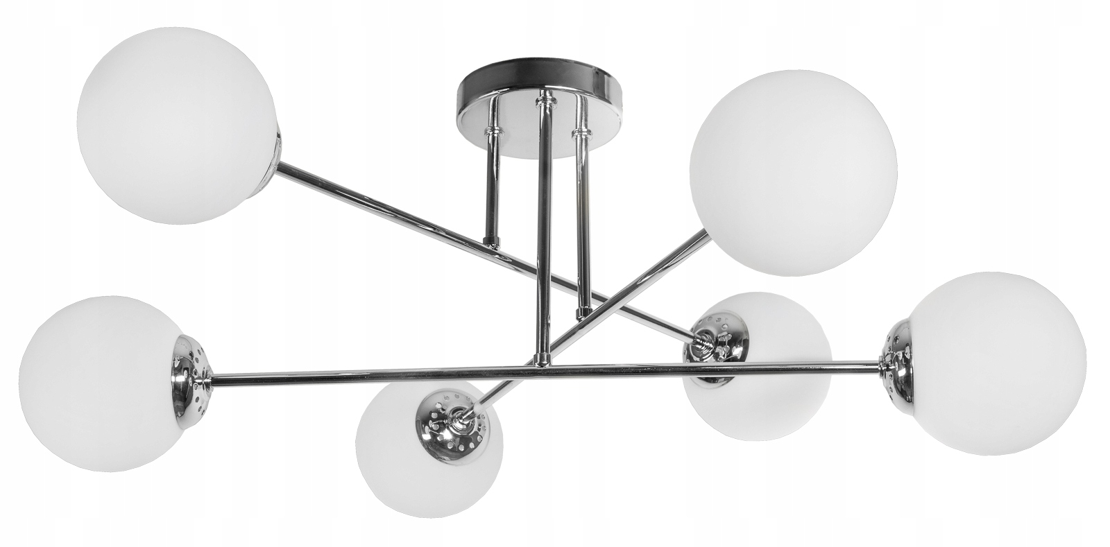 Современный потолочный светильник - люстра из серебристого хрома с белыми плафонами. Дизайнерский стиль, который идеально впишется в ваш интерьер.