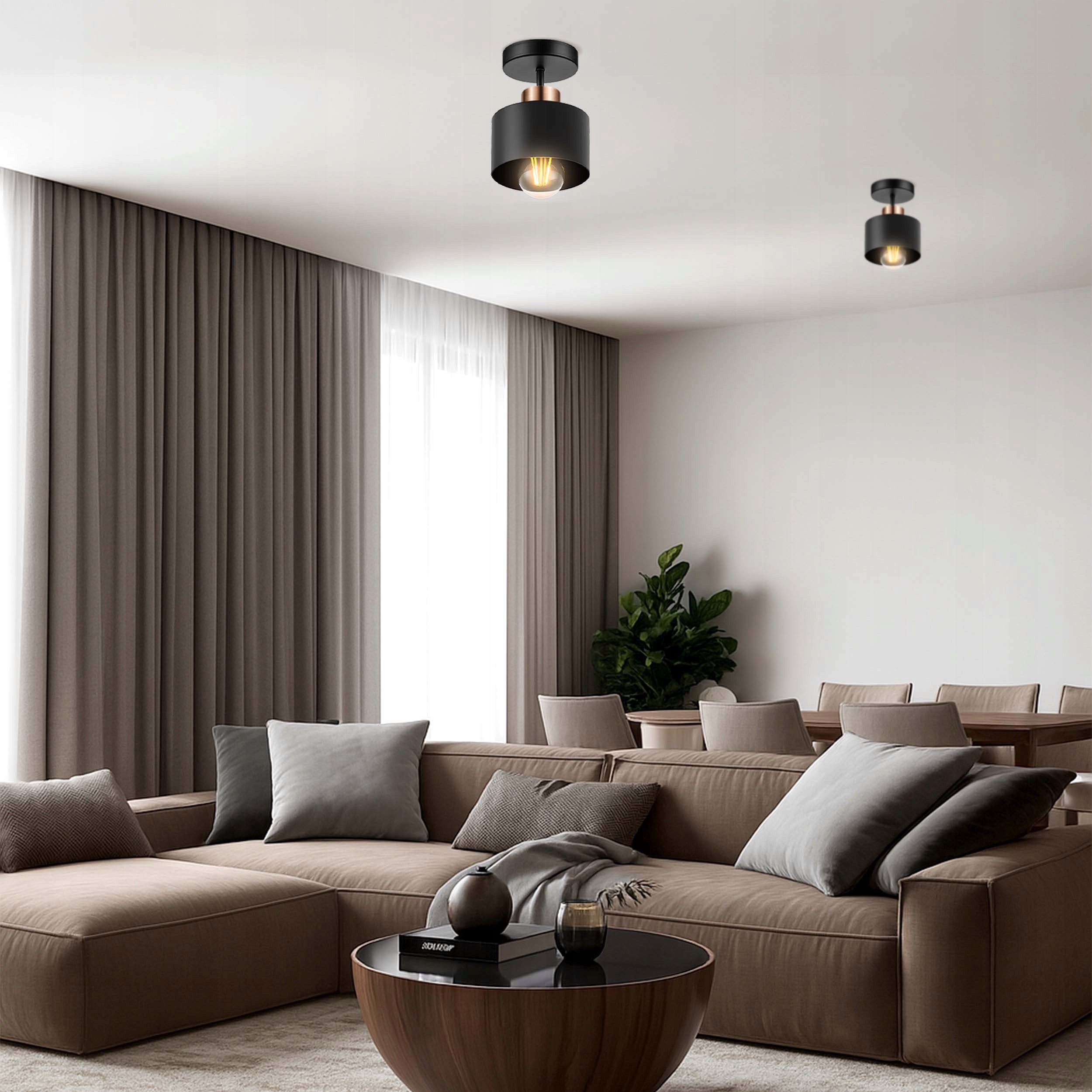 Вы ищете лампу, которая преобразит вашу гостиную, кухню или столовую? Мы представляем наш стильный черный потолочный светильник с медным акцентом, который представляет собой идеальное сочетание современного потолочного светильника с суровым характером лампы в стиле лофт и ноткой элегантности гламурного стиля. Благодаря универсальному дизайну этот промышленный светильник привнесет уникальную атмосферу и функциональное освещение в любое помещение. Это больше, чем свет – это декоративный элемент!