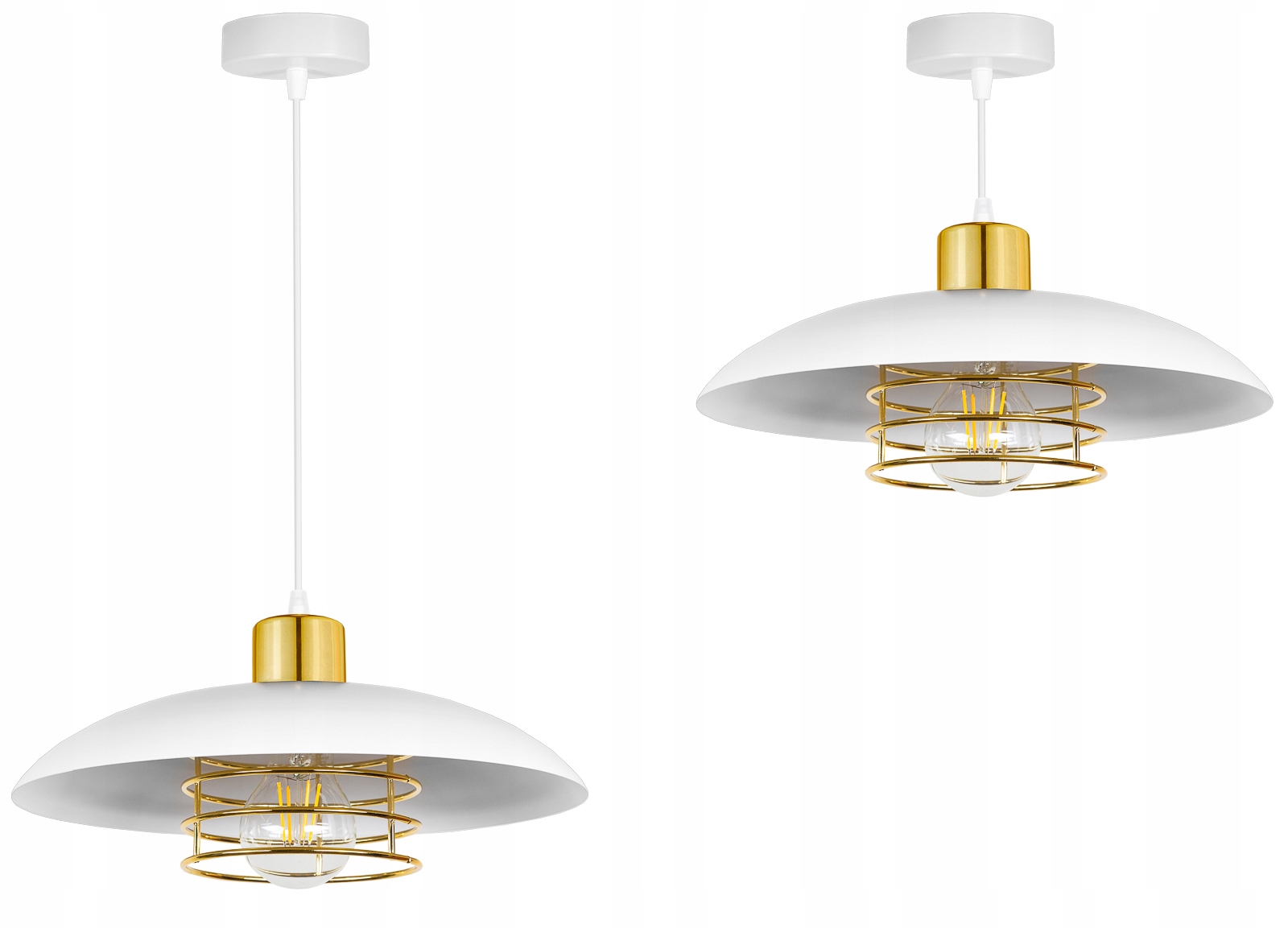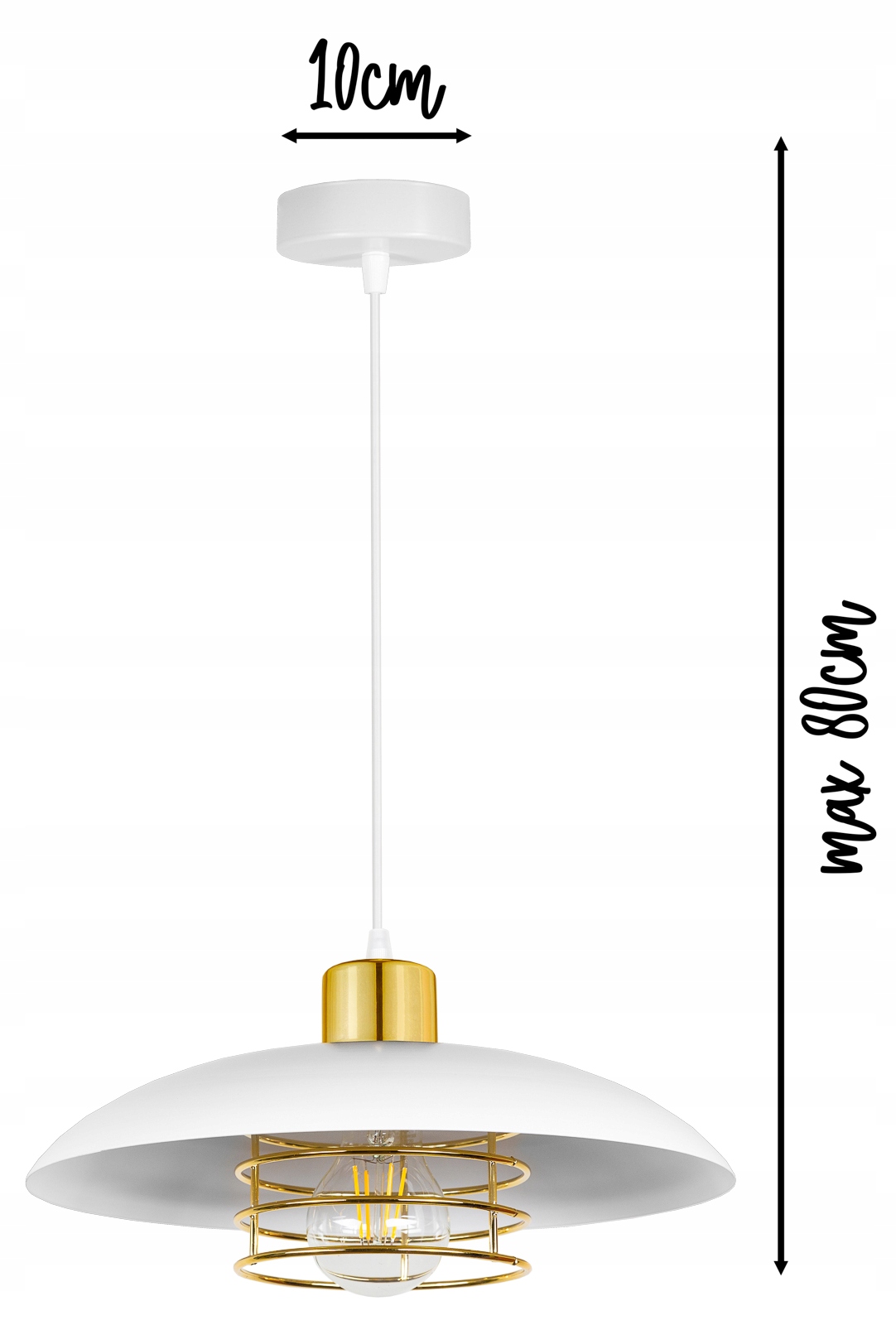 Предметом предложения является современный и дизайнерский подвесной потолочный светильник с металлическим абажуром и золотой фурнитурой.