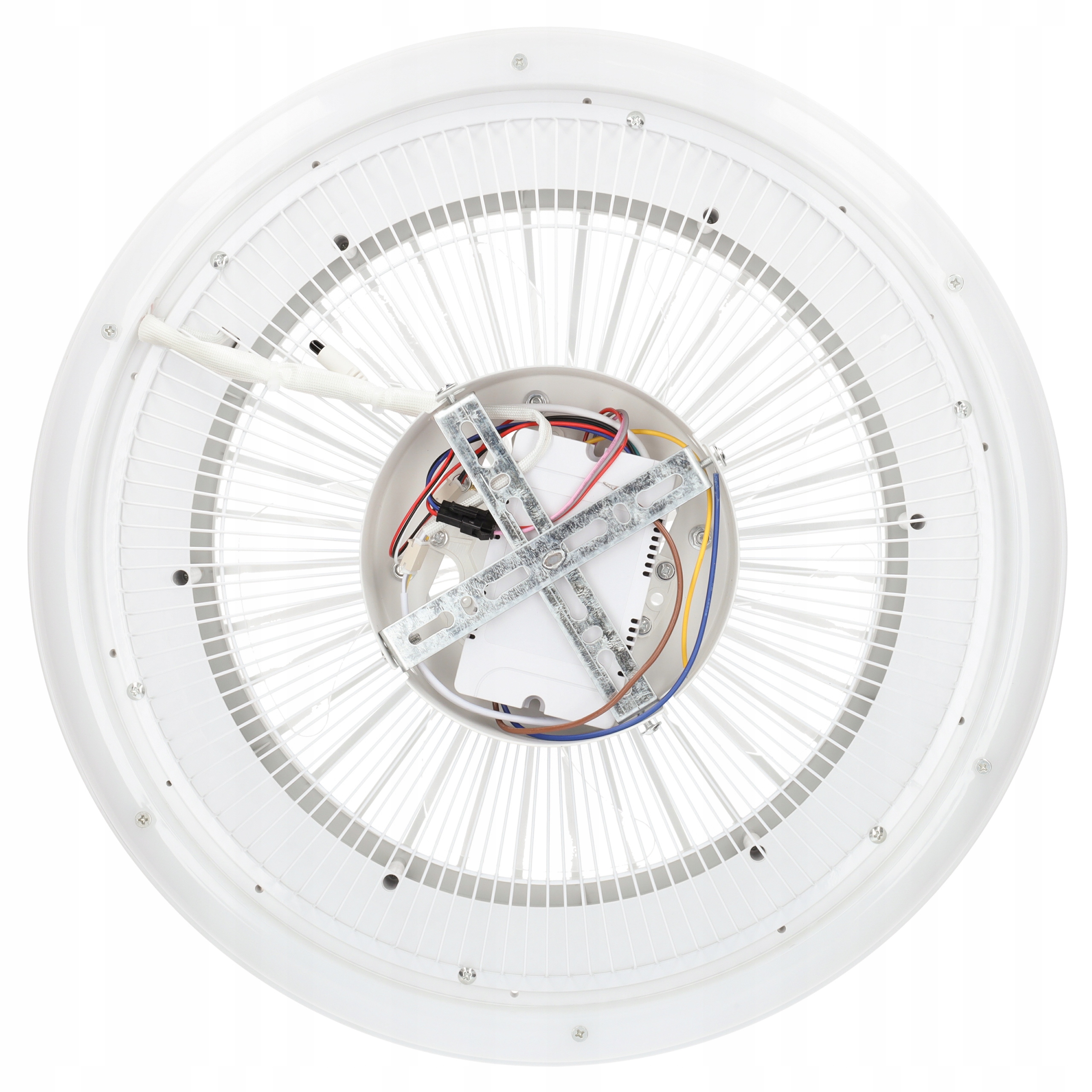 Вентилятор имеет мощность 38 Вт и имеет 6 скоростных режимов. Потолочный светодиодный светильник оснащен регулировкой температуры света, диммированием и режимом RGB. Потолочный светильник обеспечит равномерное излучение света по всей поверхности данного помещения. Всеми опциями устройства можно управлять с помощью инфракрасного пульта дистанционного управления.