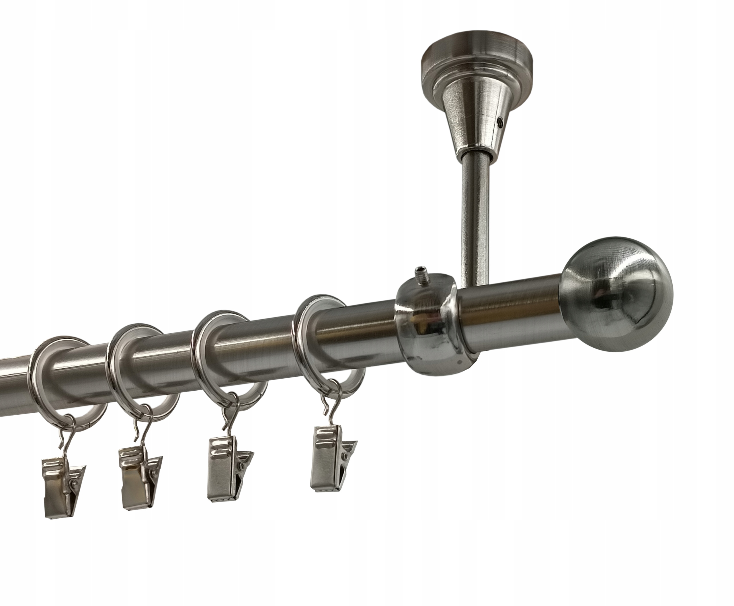 ОДИНОЧНЫЙ ПОТОЛОЧНЫЙ КРОНШТЕЙН – позволяет крепить карниз непосредственно к потолку. Кронштейн обеспечивает правильную посадку трубки карниза. Чаще всего используется для более длинных опор в качестве дополнительной защиты всего и для балансировки нагрузки подвешенных тканей.