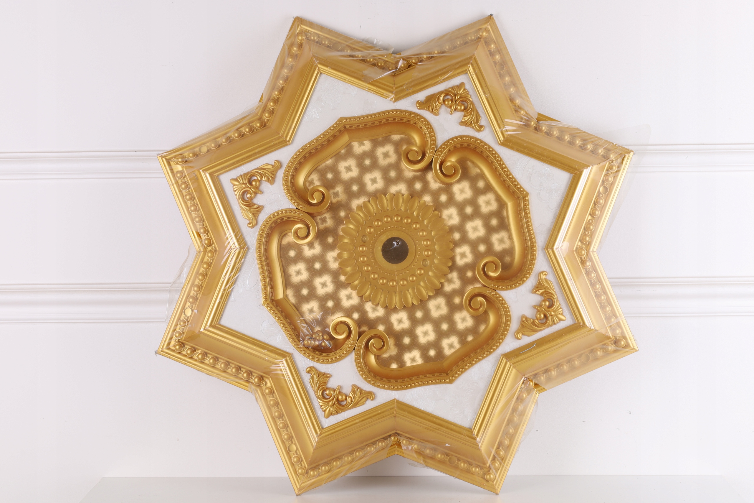 ПОТОЛОЧНАЯ РОЗЕТКА звезда 80 х 80 ЗОЛОТО - БЕЛАЯ