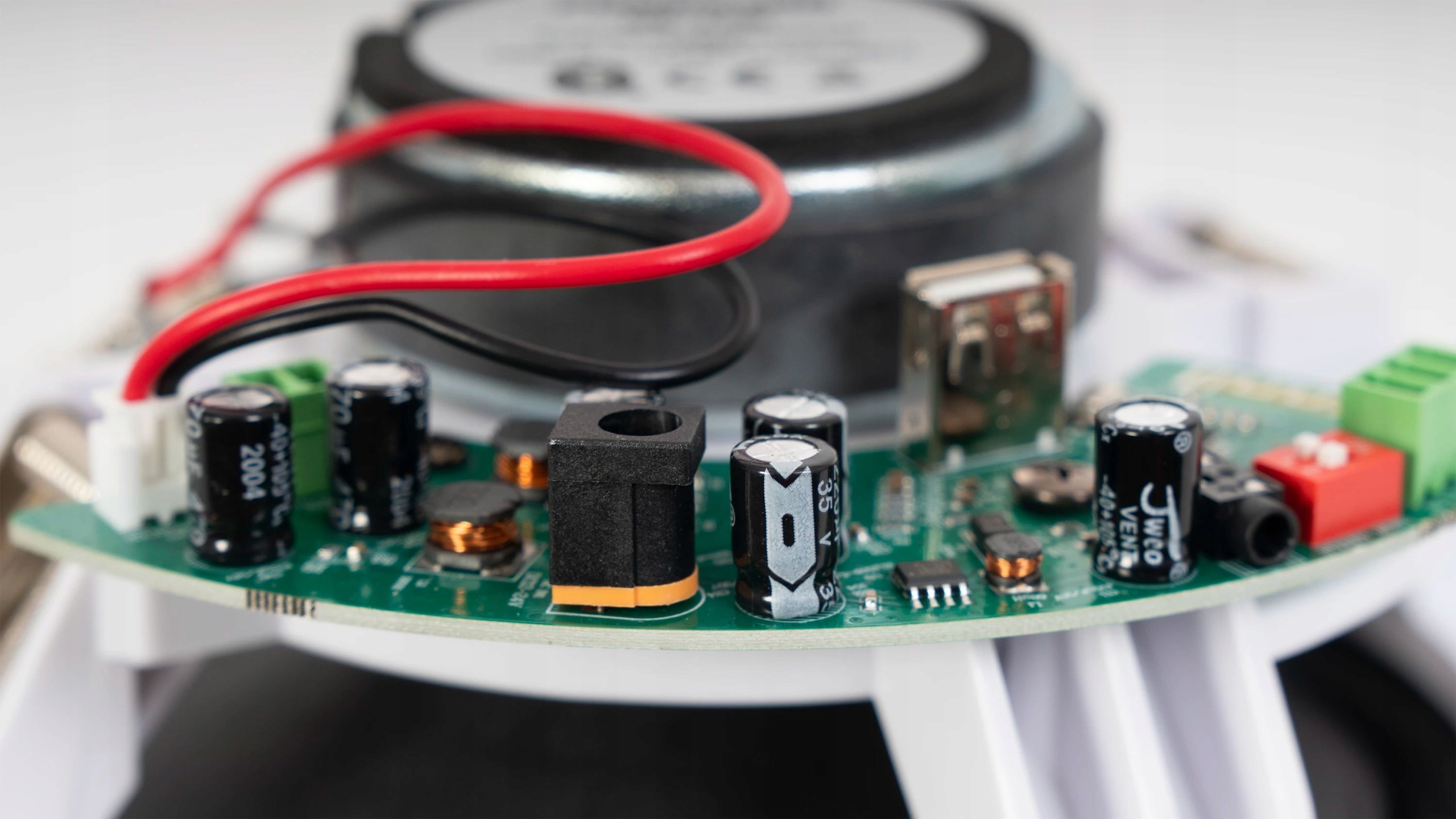 Потолочные Bluetooth-динамики Fonester KS-12B легко и быстро устанавливаются. Для крепления устройства просверлите два отверстия диаметром 170 мм и соедините оба динамика акустическим кабелем. Затем подключите шнур питания от блока питания к активному динамику и источнику питания. Заключительный этап – установка динамиков в заранее просверленные отверстия. Глубина, необходимая для установки устройства, составляет 75 мм.