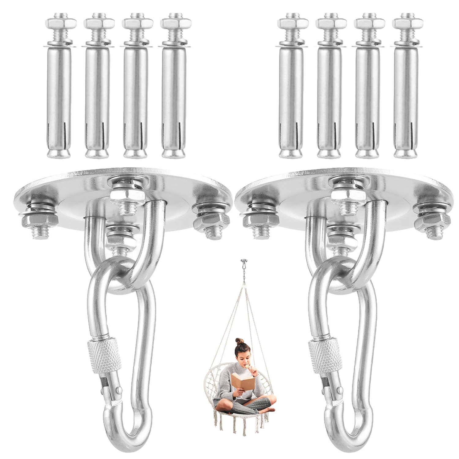 ☑️【Высокое качество, широкое применение】: Наши потолочные крючки изготовлены из высококачественной нержавеющей стали, устойчивой к ржавчине, очень прочной и имеющей длительный срок службы. Подходящие как для внутреннего, так и для наружного использования, они идеально подходят для крепления качелей, гамаков, мешков с песком, батутов и являются идеальным решением безопасности.