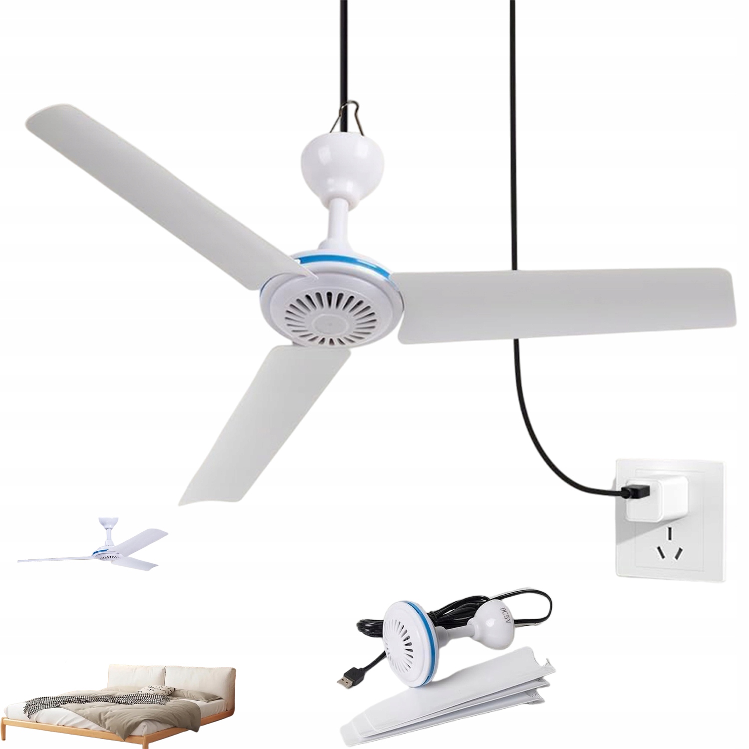 USB -вентилятор оснащен гибкими лезвиями АБС, тихим дизайном, деликатным ветром, безопасным в использовании и энергетической. Портативный потолочный вентилятор с кабелем - это вредитель - просто поместите лопасти вентилятора в подшипники, подключите вентилятор и удлинитель, и он готов! Легкая установка за 30 секунд, подключи и играйте.