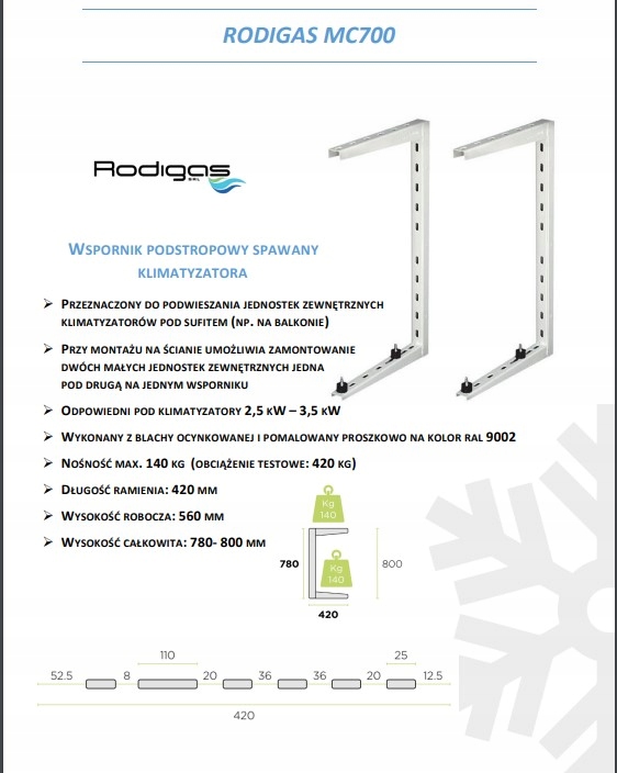 Потолочный кронштейн для установки Rodigas MC700 h1>