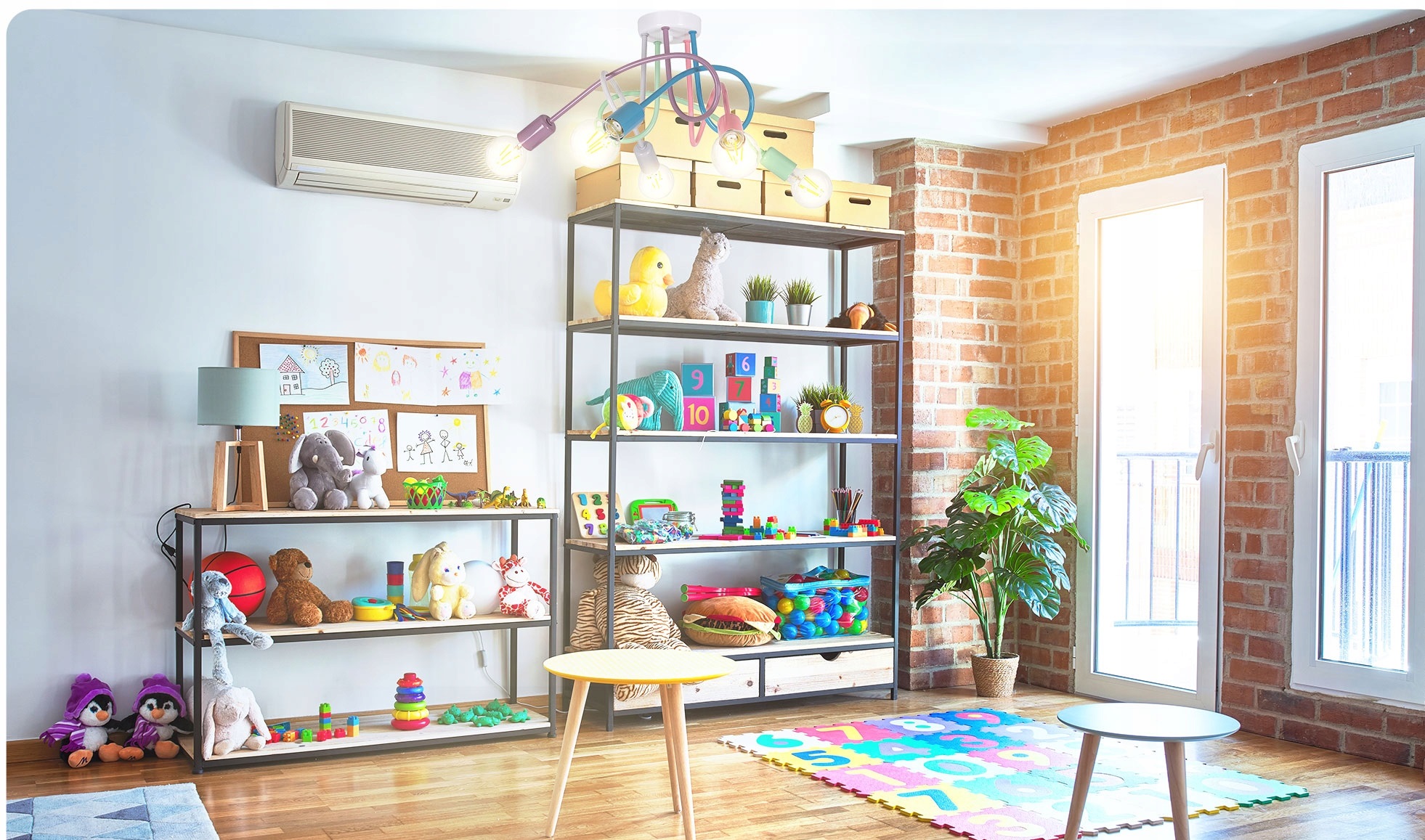 Потолочная лампа висит в детской комнате красочная люстра для детей