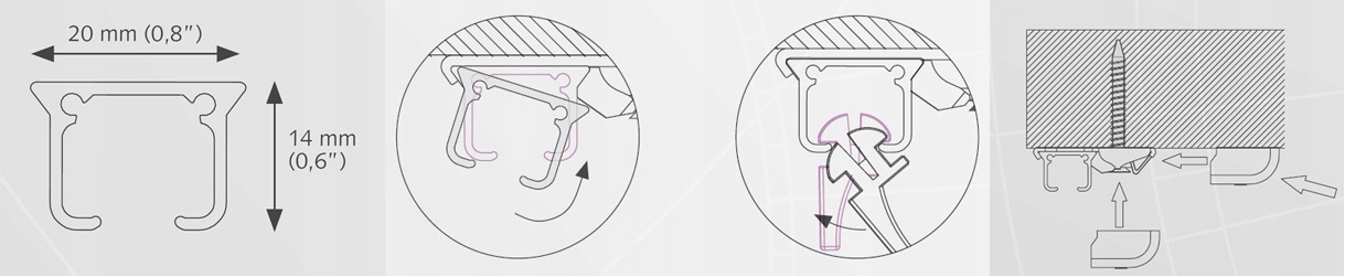 ▶ Они особенно хорошо работают в помещениях, где расстояние между окно и потолок слишком малы, чтобы установить стандартный карниз. Самым большим преимуществом карнизов этого типа является очень легкое скольжение ткани без лишнего перетягивания и защемления ткани.