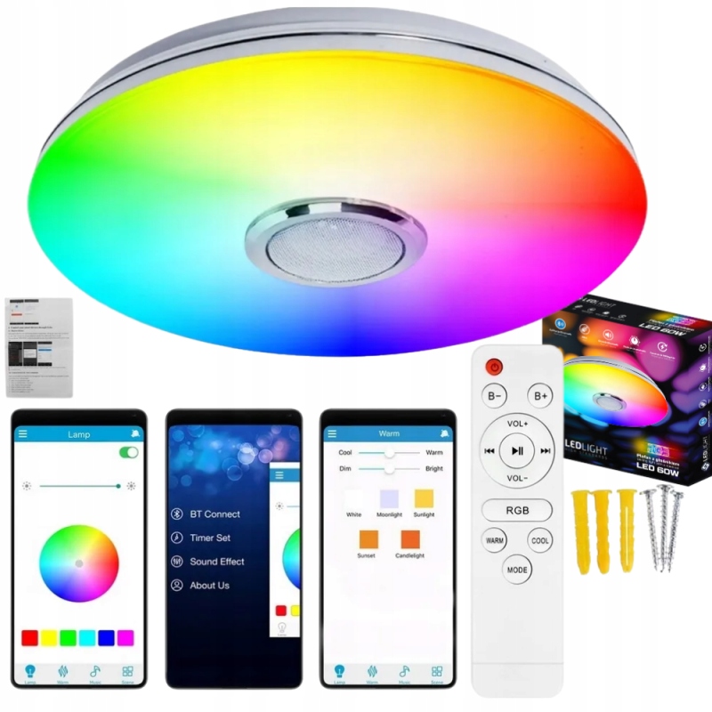 - ✅ Набор включает в себя: Plafon с динамиком, дистанционным управлением, монтажными элементами, инструкциями, упаковкой