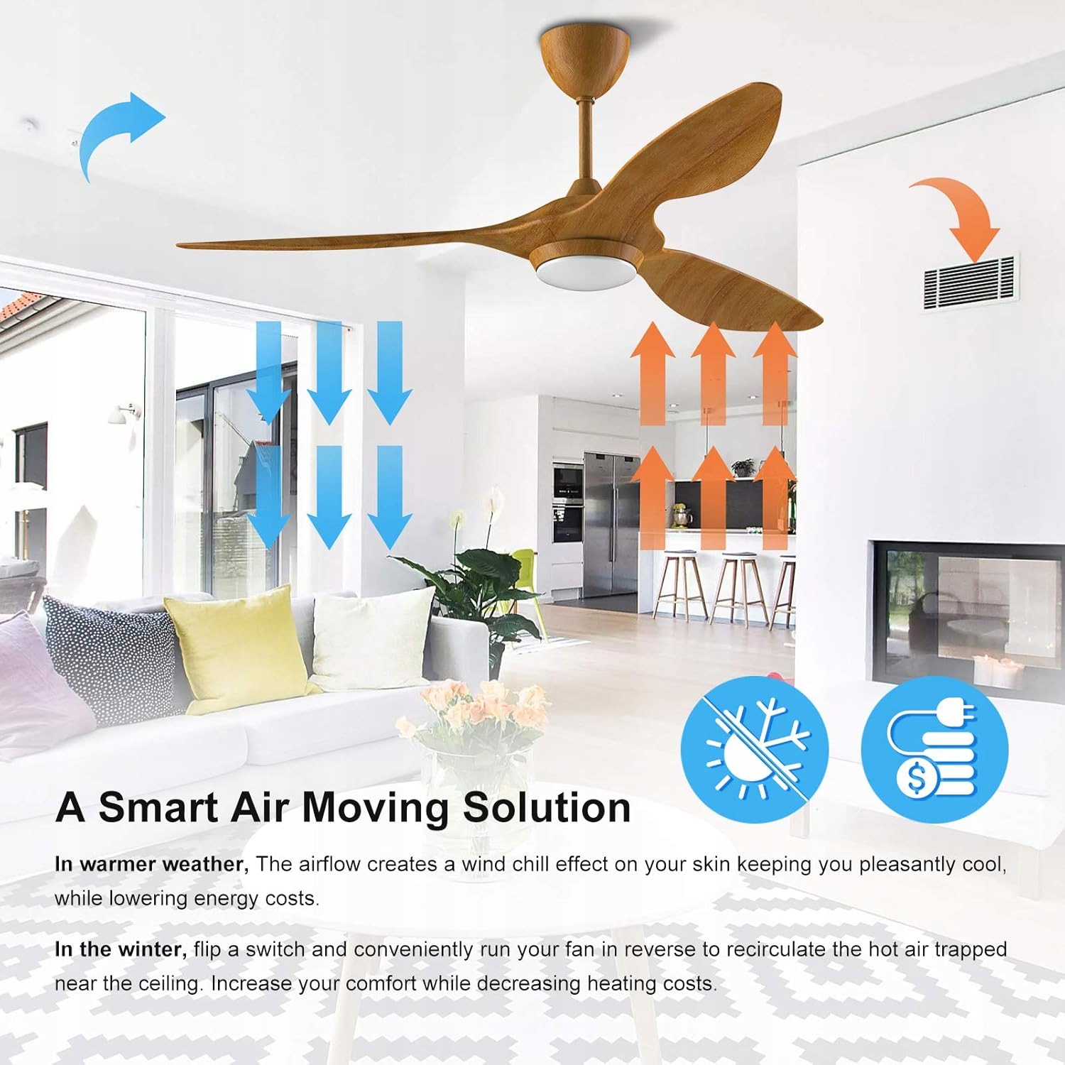 Сильный, но тихий вентилятор DC: обратимая функция, адаптированная к потребностям как зимы, так и лета, пульт дистанционного управления с прямым поворотным/задним потолком. Быстрое соединительное порты, прозрачные инструкции и видео упрощают процесс конфигурации
