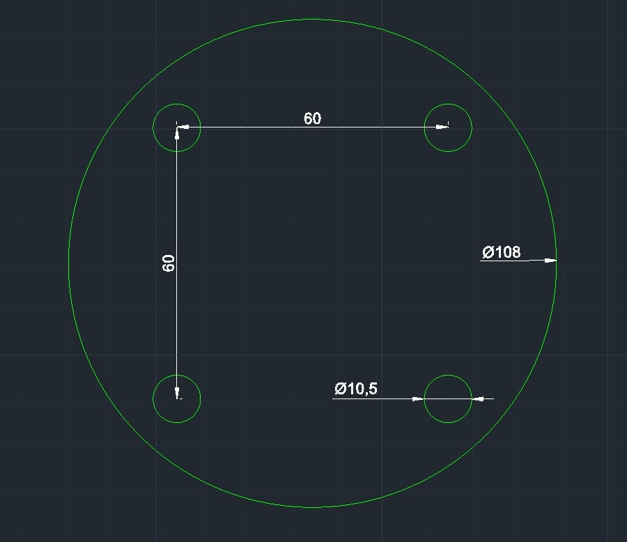 Диаметр основания 108 мм x 4 мм, ушко 40 x 40 x 6 мм, диаметр ушного отверстия 20 мм