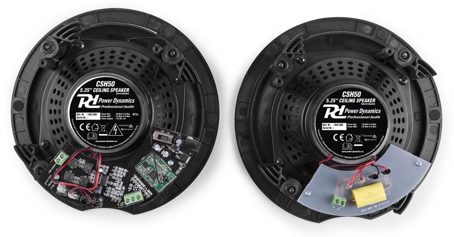 Два потолочных громкоговорителя CSH50 подходят для установки, например, в подвесном потолке или стене. Корпус изготовлен из АБС-пластика. Дополнительным преимуществом этих колонок является встроенный Bluetooth-приемник. Благодаря этому мы можем воспроизводить музыку, например, с телефона или планшета, не подключая ненужные кабели. Один динамик имеет встроенный усилитель, а другой является пассивным. Колонки идеально подходят в качестве звуковых систем для ресторанов, торговых центров и магазинов.