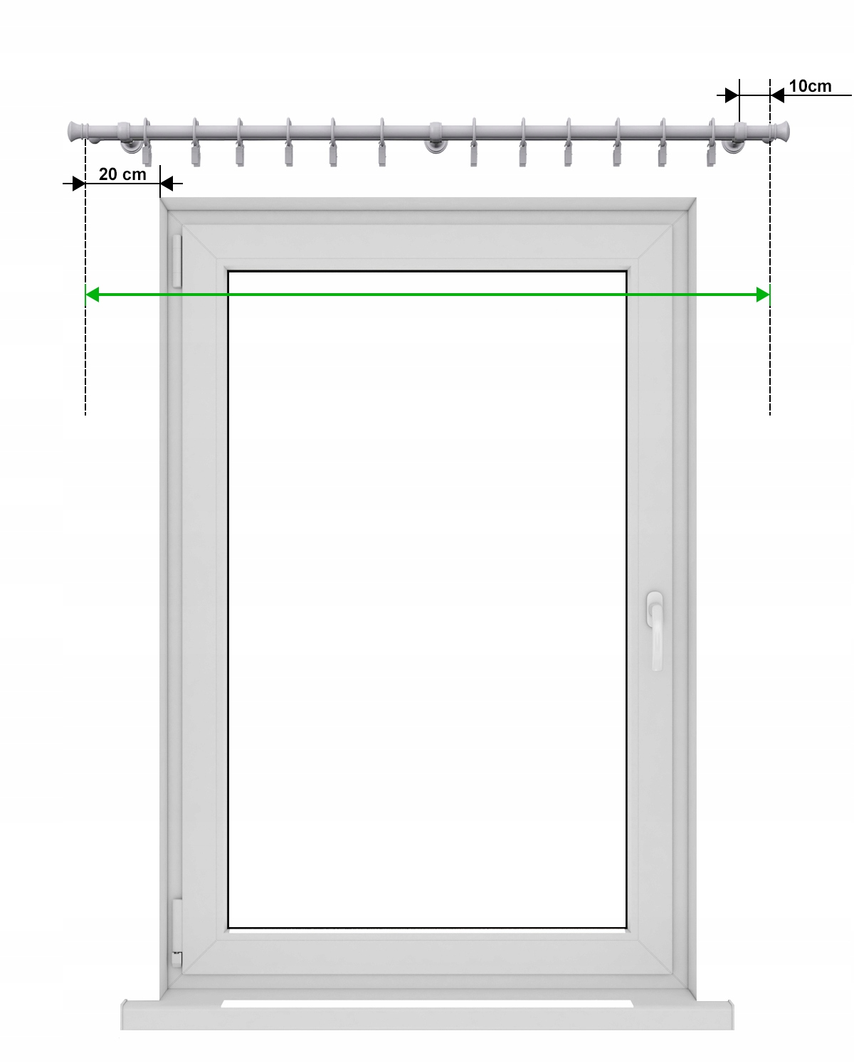 Чтобы правильно подобрать длину трубки карниза, рекомендуется, чтобы она была как минимум на 40 см шире, чем оконная ниша (20 см с каждой стороны).