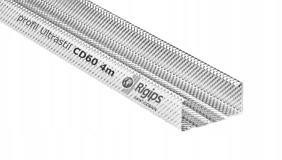 Основной потолочный профиль Rigips Ultrastil CD60 характеризуется высокими жесткость и исключительная устойчивость к изгибу. Это сводит к минимуму риск деформаций и трещин. Использование этого прочного элемента металлокаркасной конструкции обеспечивает не только прочный потолок, но и минимальный прогиб стен.