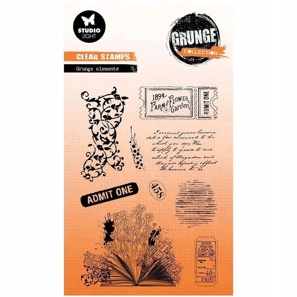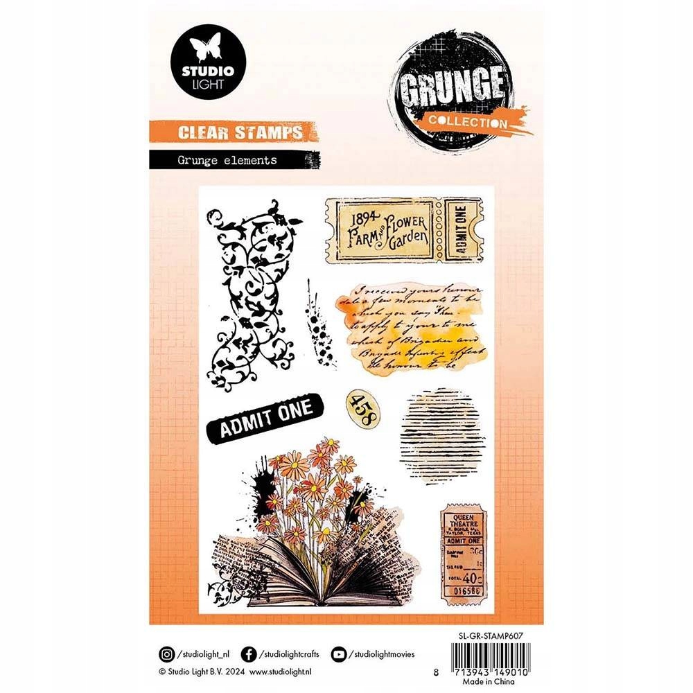 Stempel przezroczysty StudioLight Grunge elements książka kwiaty napisy